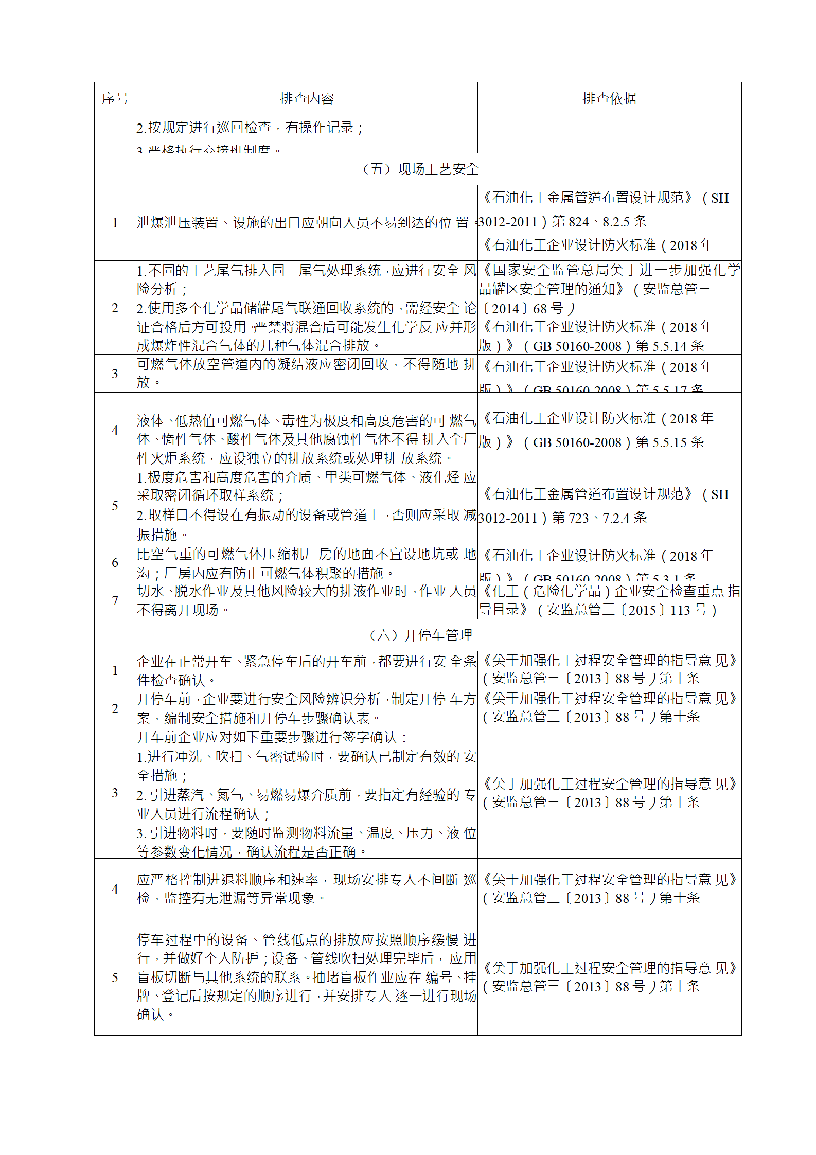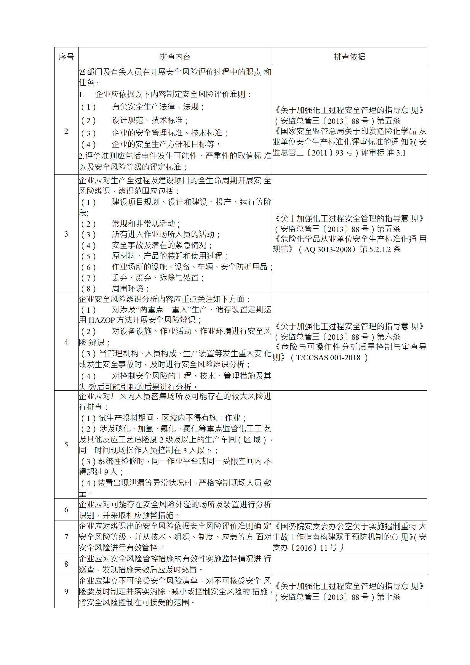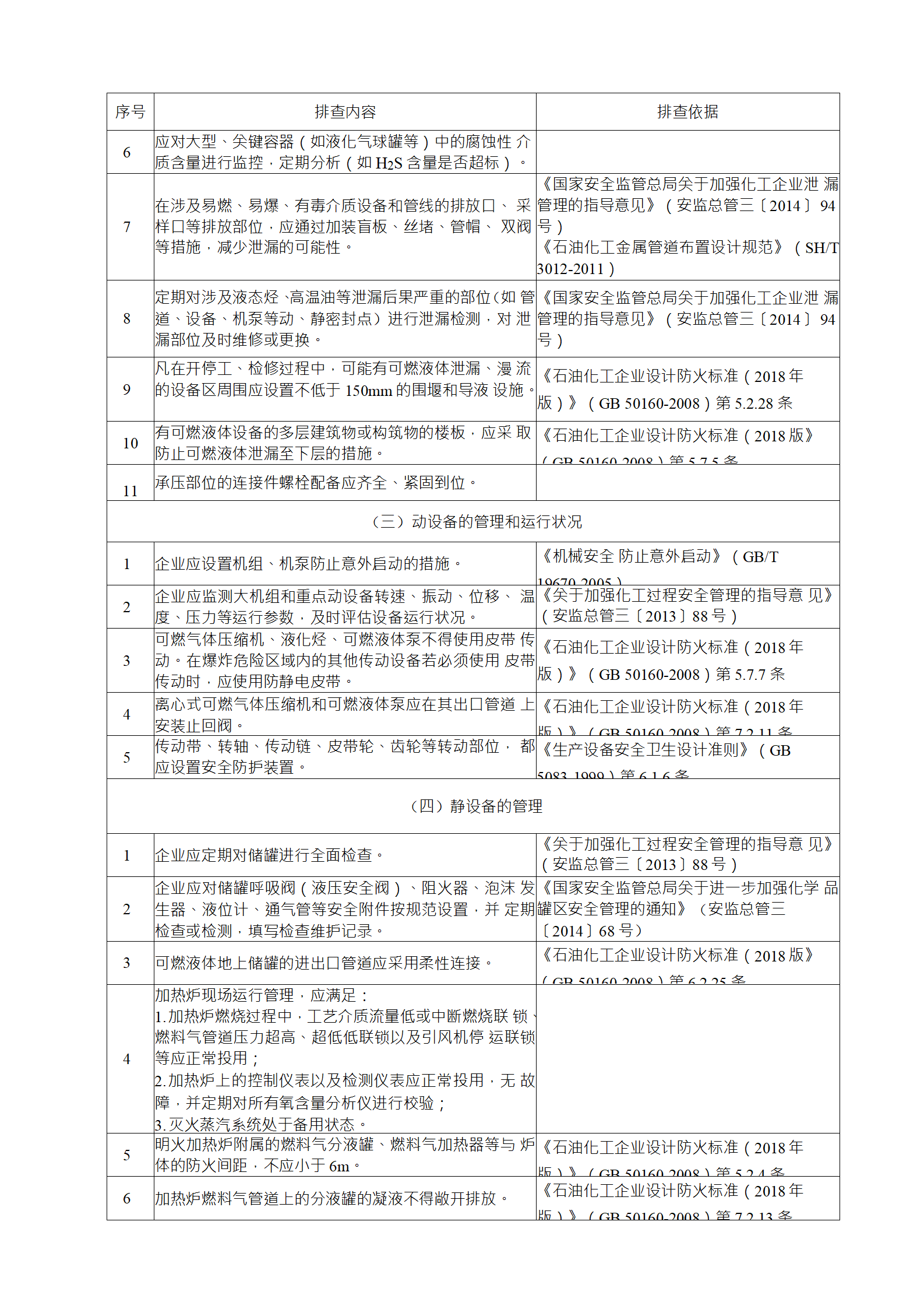 企業(yè)應結(jié)合自身安全風險及管控水平,按照化工過程安全 管理的要求,參照各專業(yè)安全風險隱患排查表(見附件),編制 符合自身實際的安全風險隱患排查表,開展安全風險隱患排查 工作。