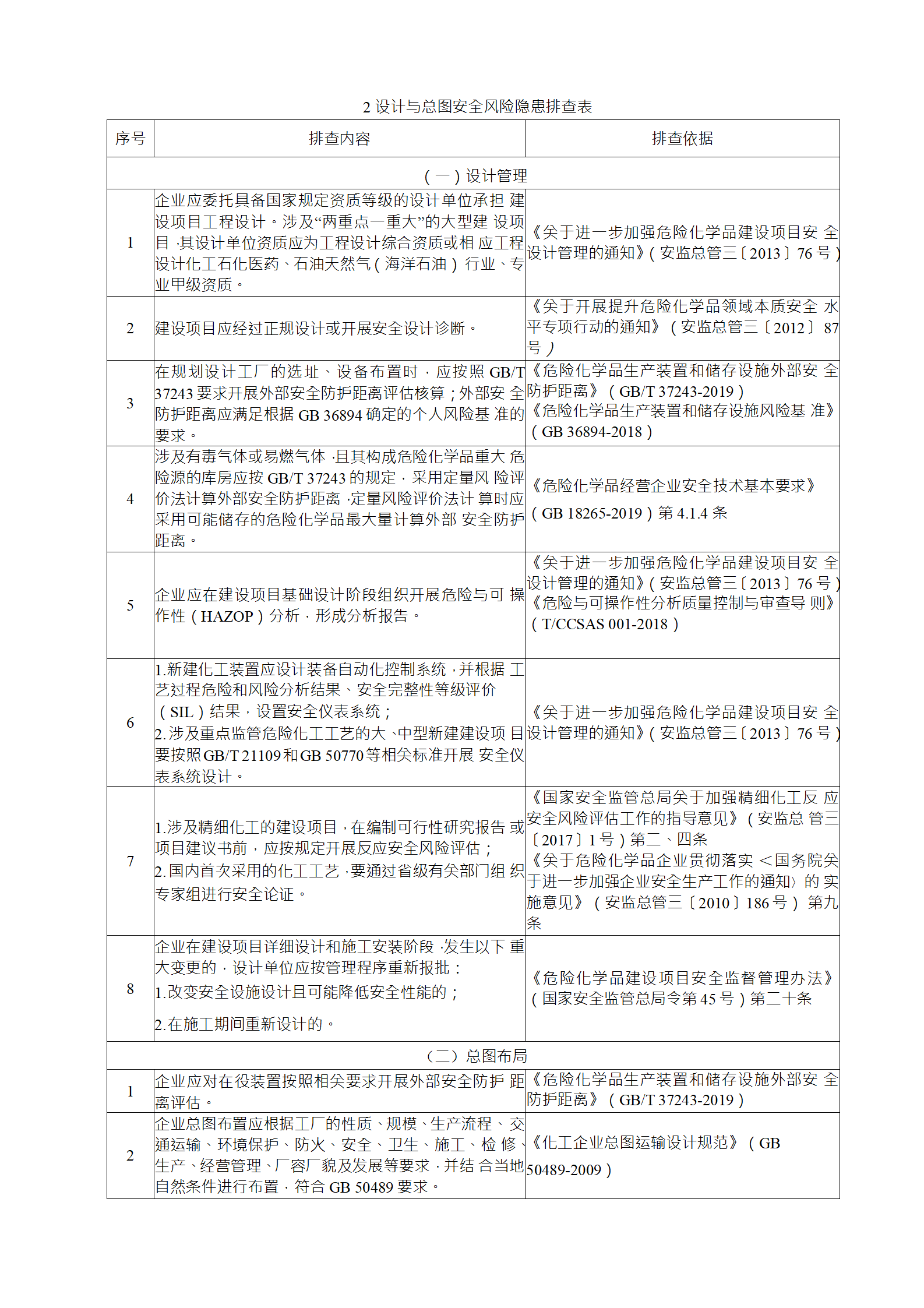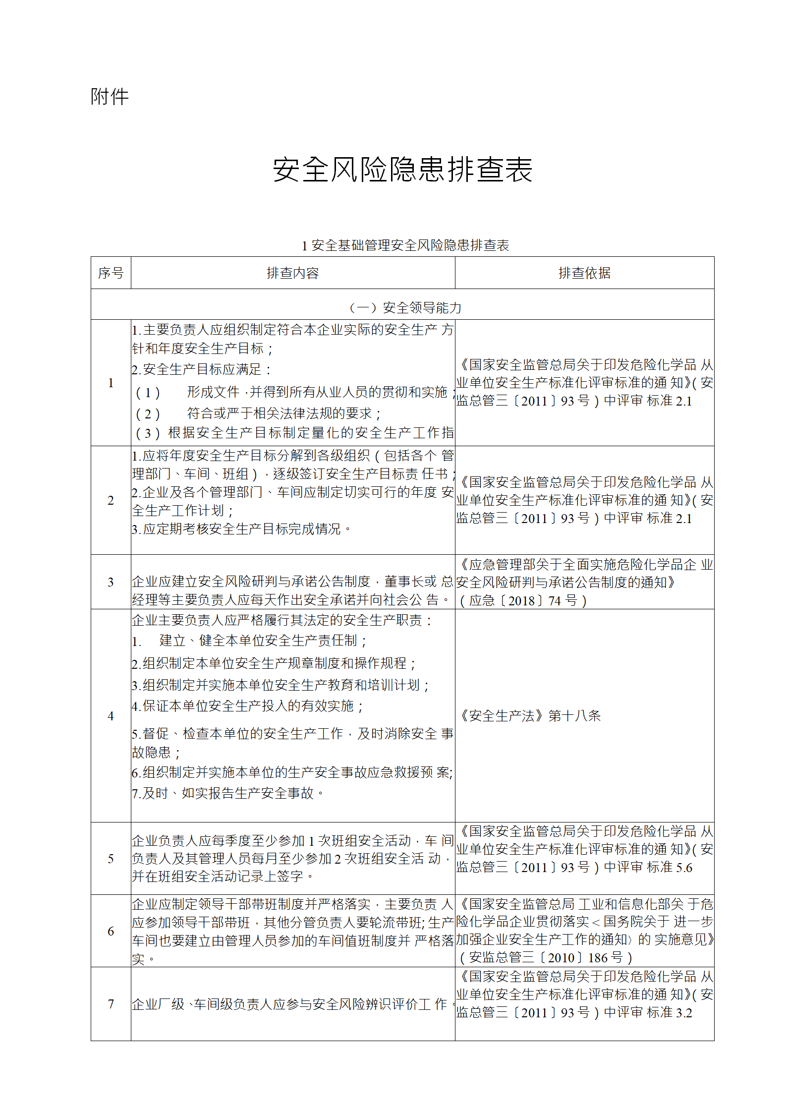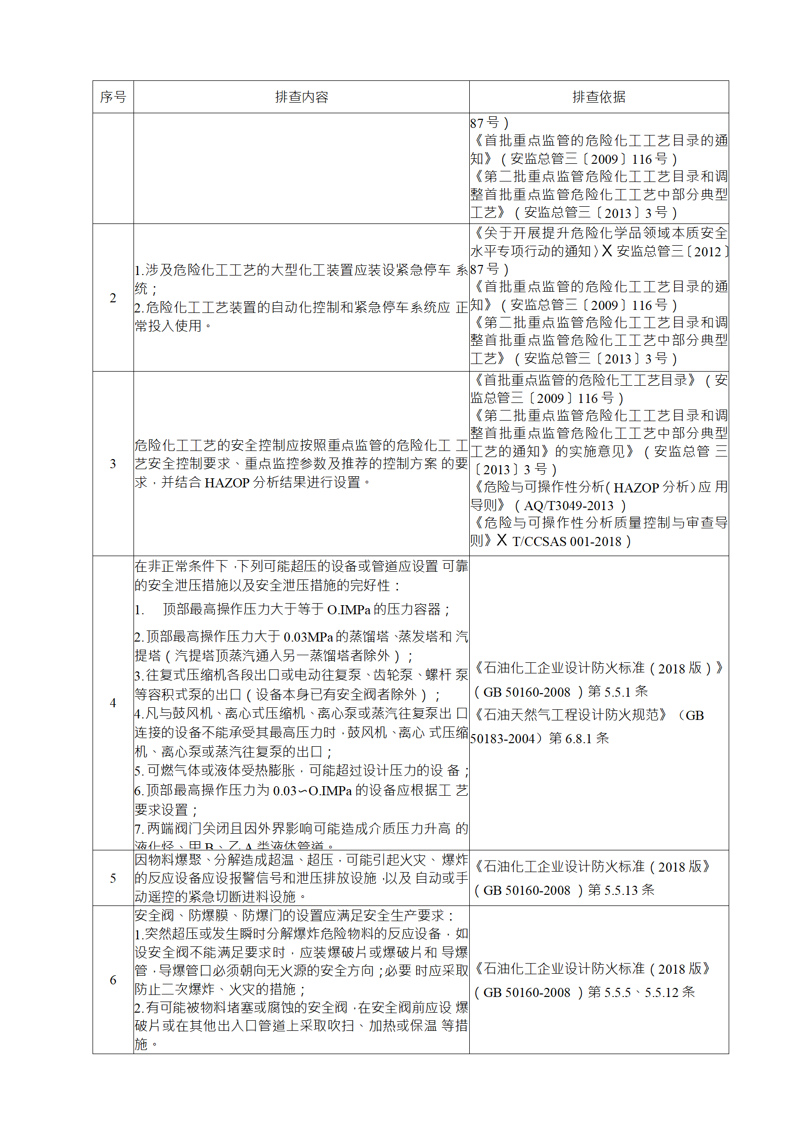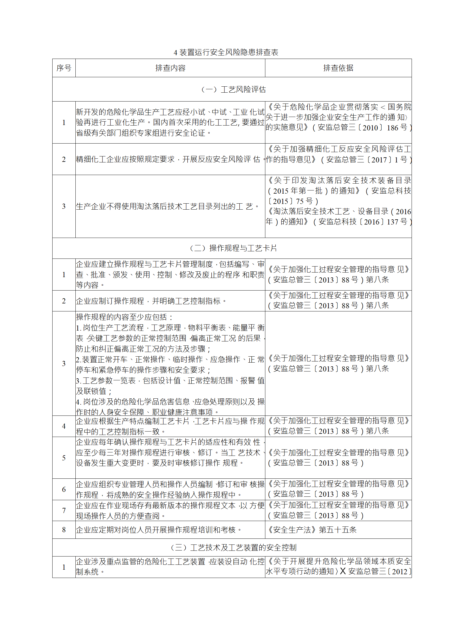 企業(yè)應結(jié)合自身安全風險及管控水平,按照化工過程安全 管理的要求,參照各專業(yè)安全風險隱患排查表(見附件),編制 符合自身實際的安全風險隱患排查表,開展安全風險隱患排查 工作。