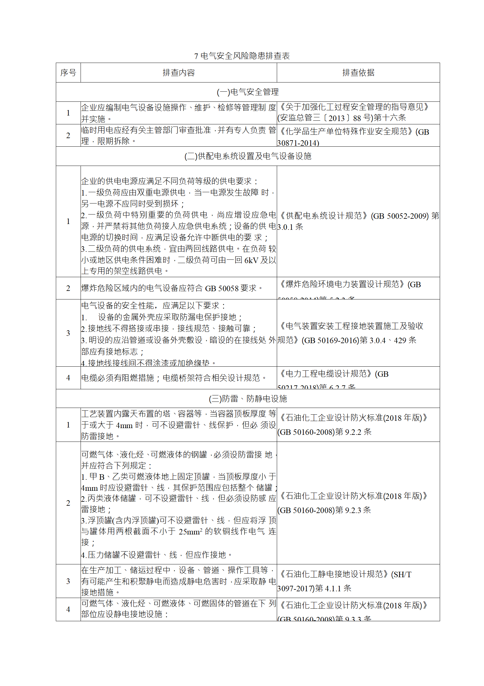 (4)季節(jié)性排查是指根據(jù)各季節(jié)特點開展的專項檢查,主要包括:春季以防雷、防靜電、防解凍泄漏、防解凍坍塌為重 點;夏季以防雷暴、防設備容器超溫超壓、防臺風、防洪、防 暑降溫為重點;秋季以防雷暴、防火、防靜電、防凝保溫為重 點;冬季以防火、防爆、防雪、防凍防凝、防滑、防靜電為重 點;