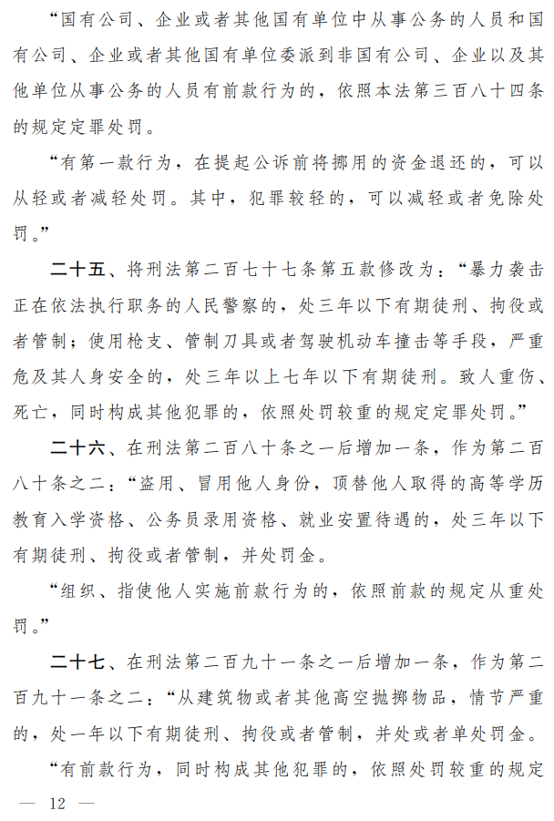 第十三屆全國人大常委會第二十二次會議對《中華人民共和國刑法修正案(十一)(草案二次審議稿)》進行了審議,現(xiàn)公布《中華人民共和國刑法修正案(十一)(草案二次審議稿)》全文。