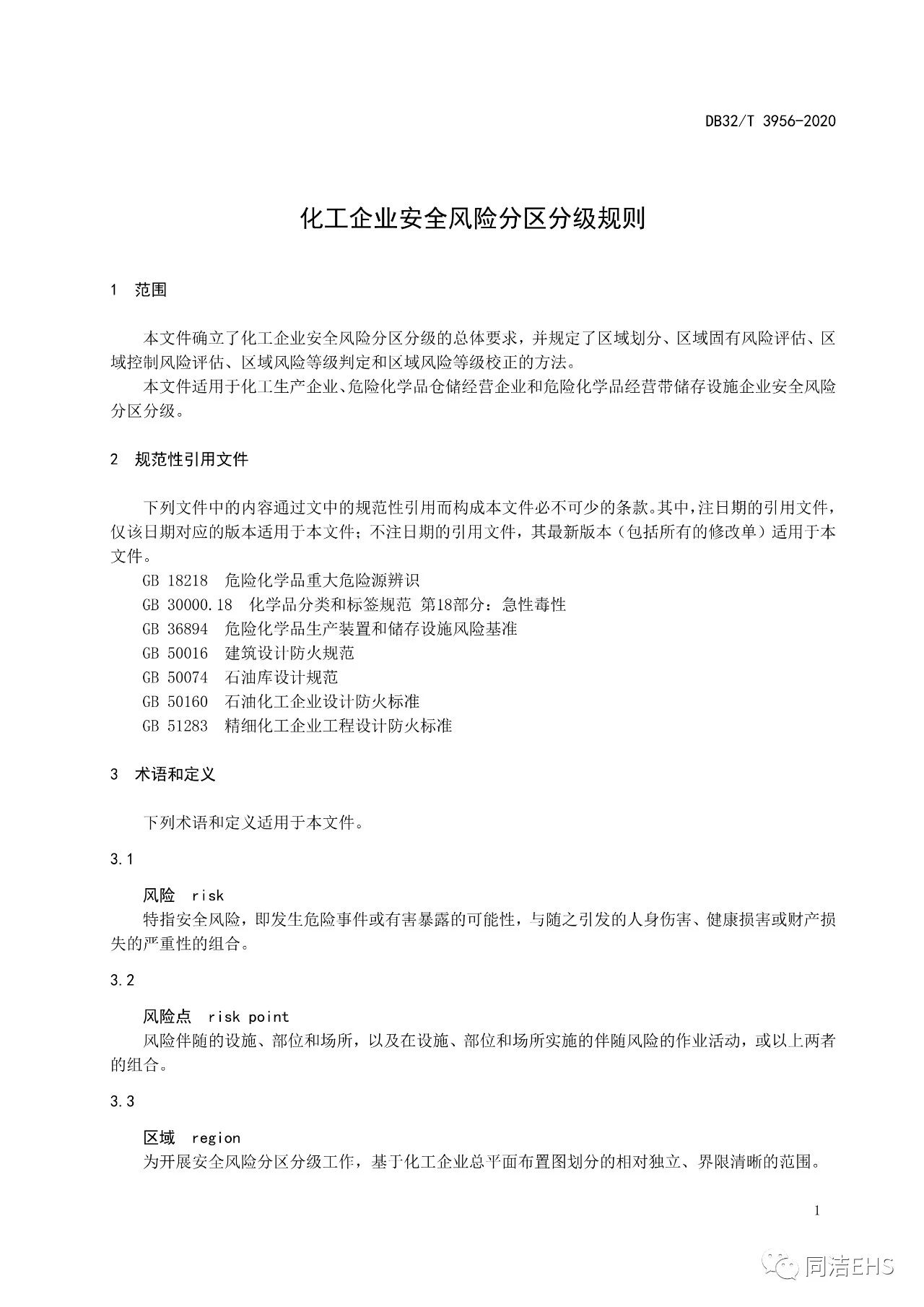 DB32T 3956-2020 化工企業(yè)安全風(fēng)險(xiǎn)分區(qū)分級(jí)規(guī)則(江蘇省標(biāo)準(zhǔn)),2020年1月15日起實(shí)施