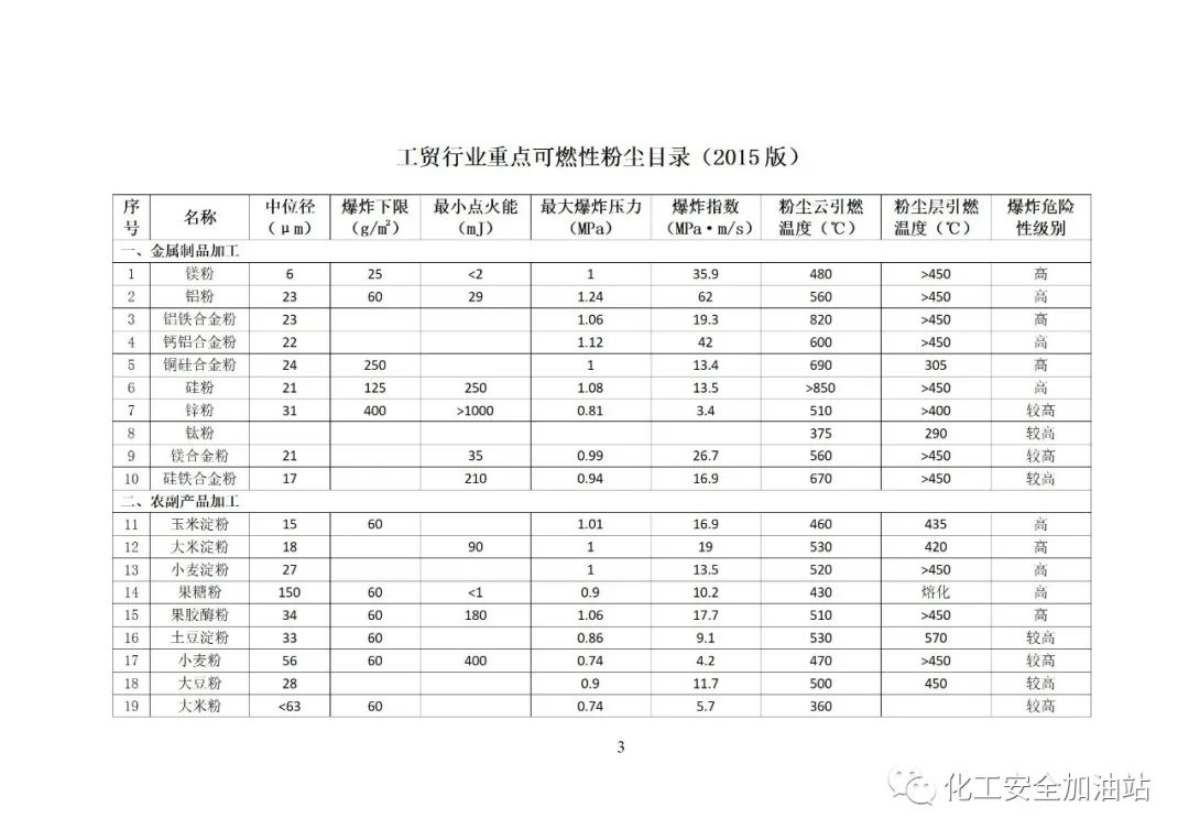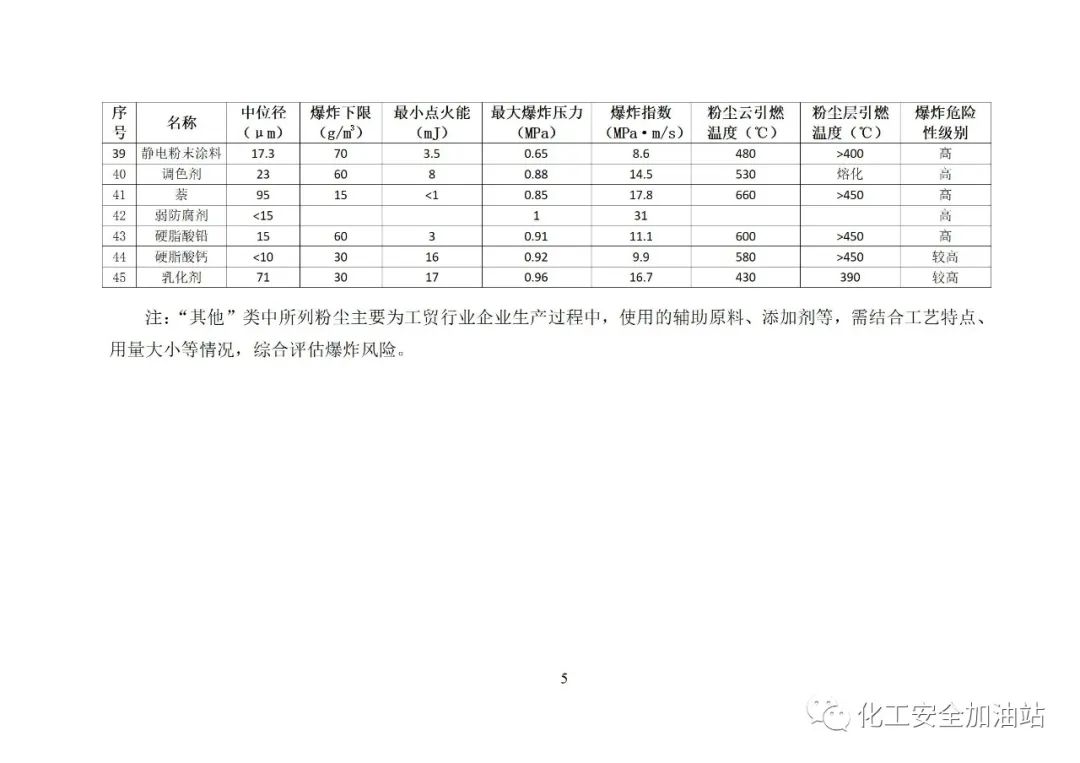 本目錄所列粉塵僅限于冶金、有色、建材、機械、輕工、紡織、煙草、商貿(mào)等行業(yè)企業(yè)生產(chǎn)加工所涉及的爆炸危險性相對較高的可燃性粉塵。