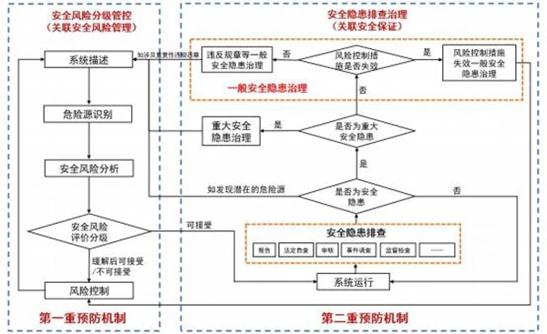 如發(fā)現(xiàn)重大安全隱患,應(yīng)按照8.3的要求進(jìn)行治理;如發(fā)現(xiàn)一般安全隱患,應(yīng)當(dāng)按照8.4的要求進(jìn)行治理;排查中如發(fā)現(xiàn)潛在的危險(xiǎn)源,應(yīng)回溯到“7.2系統(tǒng)描述”進(jìn)行定位和梳理,適時(shí)啟動(dòng)安全風(fēng)險(xiǎn)分級(jí)管控流程識(shí)別危險(xiǎn)源并管控相關(guān)風(fēng)險(xiǎn);如評(píng)估發(fā)現(xiàn)的問(wèn)題不屬于上述任何一類,可選擇是否改進(jìn)后,回到系統(tǒng)運(yùn)行環(huán)節(jié)。