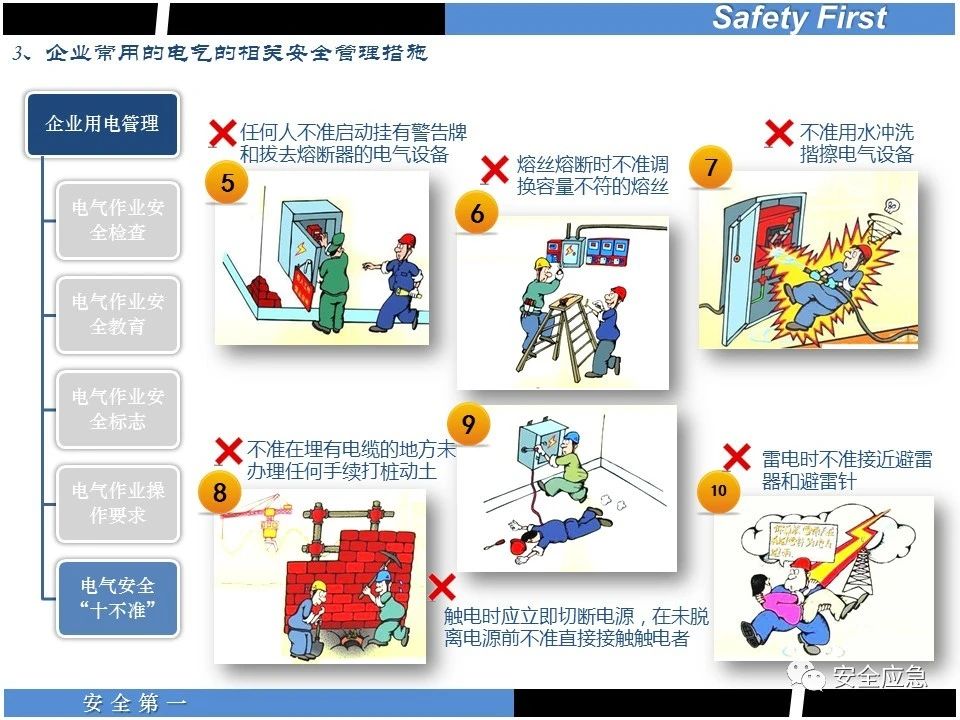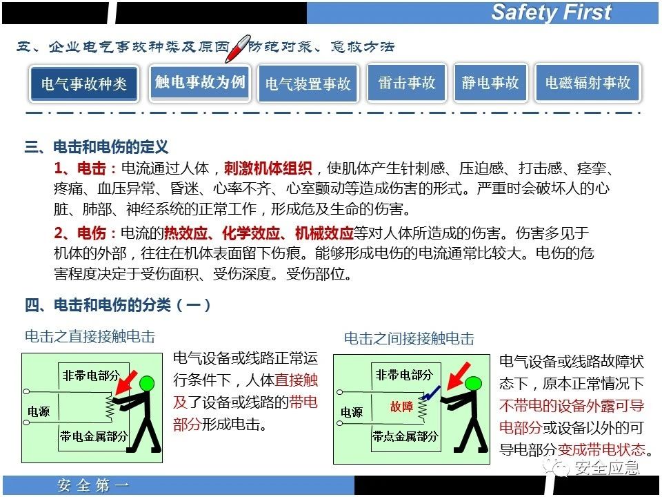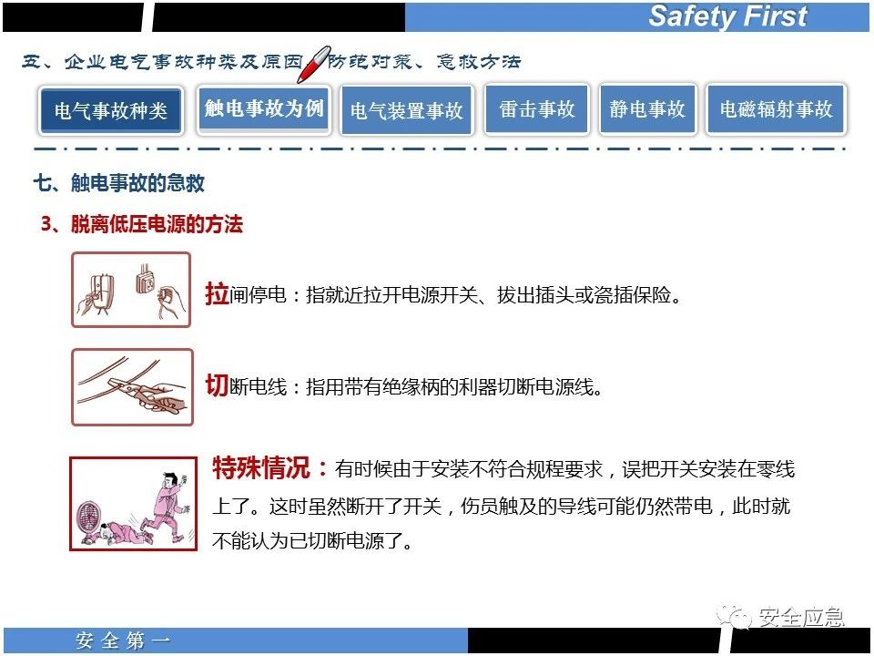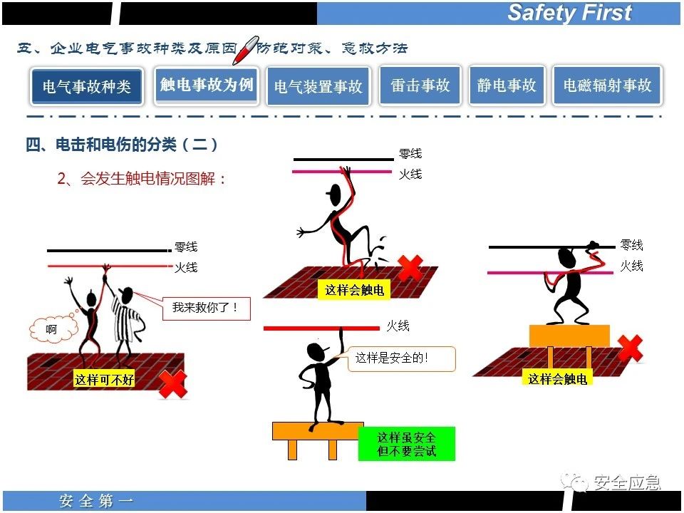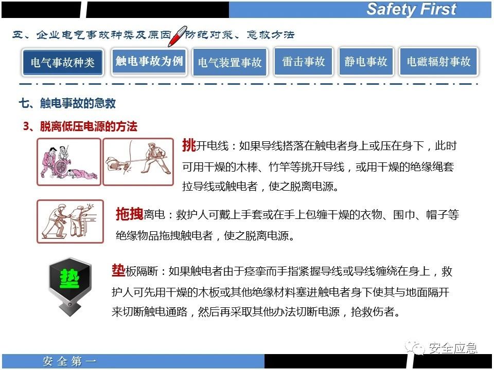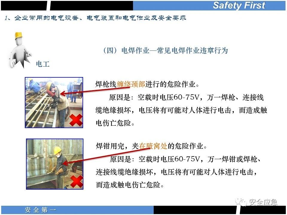 案例73 事故案例73:某35變電站準(zhǔn)備10kV避雷器試驗(yàn)。作業(yè)人員會同運(yùn)行人員準(zhǔn)備查看設(shè)備實(shí)際情況,拆卸10kV開關(guān)柜背板螺栓,打開了柜門上的電磁鎖,并打開了后柜門后,作業(yè)人員探頭進(jìn)入開關(guān)柜內(nèi)時(shí),對開關(guān)柜放電。 其它案例見17、18、19、20、21、22、23、50、52。 (27)多組人員組織混亂 案例74 事故案例74:某單位開展500kV線路停電檢修和地線融冰試驗(yàn)。1名工作人員不聽他人勸阻,登塔拆除引流線。隨后開展地線融冰試驗(yàn),該工作人員觸電死亡。 其它案例見45、46、47、48。 (28)交底不認(rèn)真 案例75 事故案例75:某工作負(fù)責(zé)人帶領(lǐng)兩名工作人員準(zhǔn)備在10kV線路裝設(shè)接地線。工作前,工作負(fù)責(zé)人沒有進(jìn)行班前(后)會,沒有分配工作任務(wù),也沒有交代安全注意事項(xiàng),另外兩人也沒有主動(dòng)詢問,相互提醒,導(dǎo)致工作負(fù)責(zé)人無監(jiān)護(hù)誤登運(yùn)行線路,造成觸電。 其它案例見32。 (29)監(jiān)護(hù)不到位 l 單人工作無監(jiān)護(hù) 事故案例:36。 l 監(jiān)護(hù)人參與工作 事故案例:11。 l 監(jiān)護(hù)不認(rèn)真,或默許違章行為 事故案例:67。 (30)人員、工作安排不恰當(dāng) 案例76 事故案例76:某供電所安排不具備單獨(dú)工作資格和能力的新入廠員工上桿進(jìn)行配變設(shè)備搶修工作,由于安全距離不夠,員工經(jīng)驗(yàn)不足,監(jiān)護(hù)不到位,導(dǎo)致觸電。 案例77 事故案例77:某高壓試驗(yàn)班開展定檢預(yù)試作業(yè)。工作負(fù)責(zé)人與工作人員在抄錄放電計(jì)數(shù)器銘牌,另一名剛參加工作不久的工作人員拿著自制試驗(yàn)線插入移動(dòng)電源盤插座內(nèi),然后,用左、右手分別拿住兩個(gè)鱷魚夾準(zhǔn)備對放電器搭接做試驗(yàn),左、右手習(xí)慣性的分別握住了兩個(gè)鱷魚夾的導(dǎo)體部分,此時(shí)電流通過人體,漏電保護(hù)器沒有動(dòng)作,觸電死亡。 (31)單人作業(yè) l 野外單人巡線、勘察 案例78 事故案例78:某單位開展線路巡視時(shí),單人作業(yè),在被告知“巡視完N58塔后切勿過江,要沿原路返回”的情況下,仍然獨(dú)自一人違規(guī)游泳過江,溺水身亡。 案例79 事故案例79:某單位野外勘察時(shí),某工作人員在未告知工作負(fù)責(zé)人的情況下,獨(dú)自一人返回車輛所在地,途中墜落懸崖暈倒,受輕傷并失蹤12小時(shí)。 附件:最全面的電氣安全培訓(xùn),實(shí)用!