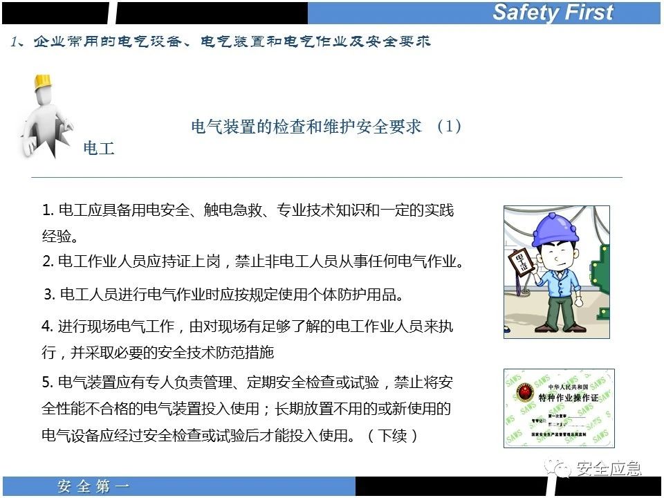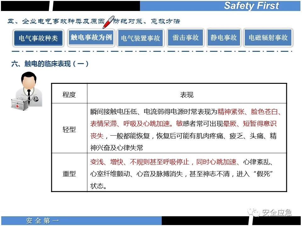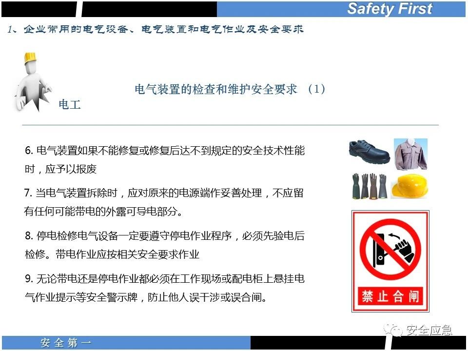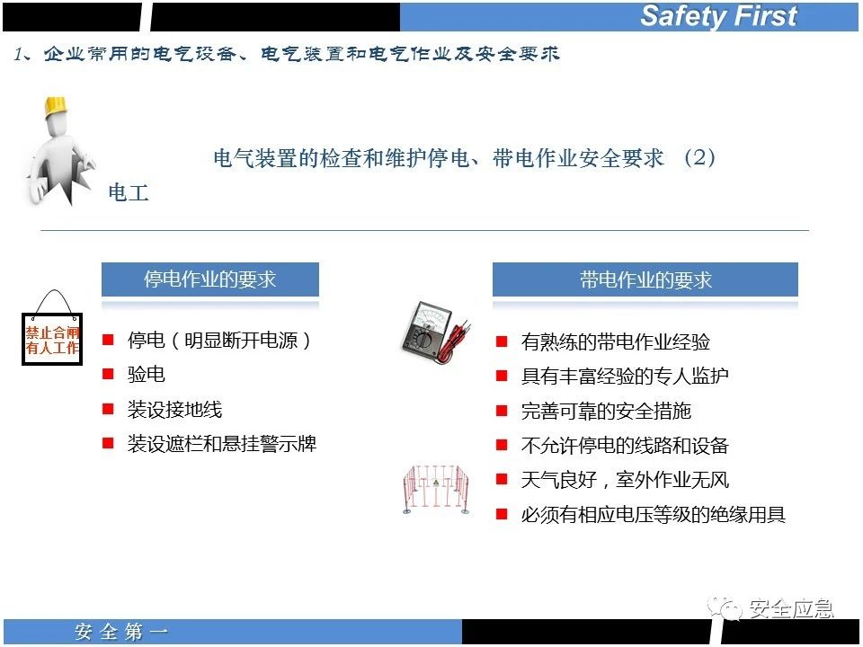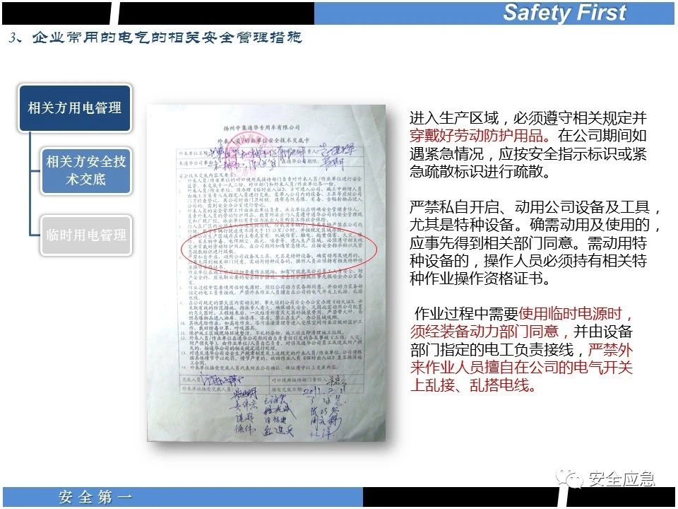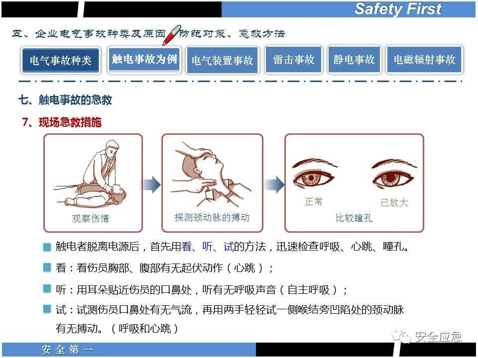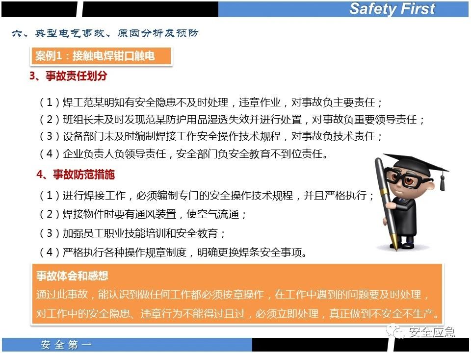 案例73 事故案例73:某35變電站準(zhǔn)備10kV避雷器試驗(yàn)。作業(yè)人員會同運(yùn)行人員準(zhǔn)備查看設(shè)備實(shí)際情況,拆卸10kV開關(guān)柜背板螺栓,打開了柜門上的電磁鎖,并打開了后柜門后,作業(yè)人員探頭進(jìn)入開關(guān)柜內(nèi)時(shí),對開關(guān)柜放電。 其它案例見17、18、19、20、21、22、23、50、52。 (27)多組人員組織混亂 案例74 事故案例74:某單位開展500kV線路停電檢修和地線融冰試驗(yàn)。1名工作人員不聽他人勸阻,登塔拆除引流線。隨后開展地線融冰試驗(yàn),該工作人員觸電死亡。 其它案例見45、46、47、48。 (28)交底不認(rèn)真 案例75 事故案例75:某工作負(fù)責(zé)人帶領(lǐng)兩名工作人員準(zhǔn)備在10kV線路裝設(shè)接地線。工作前,工作負(fù)責(zé)人沒有進(jìn)行班前(后)會,沒有分配工作任務(wù),也沒有交代安全注意事項(xiàng),另外兩人也沒有主動(dòng)詢問,相互提醒,導(dǎo)致工作負(fù)責(zé)人無監(jiān)護(hù)誤登運(yùn)行線路,造成觸電。 其它案例見32。 (29)監(jiān)護(hù)不到位 l 單人工作無監(jiān)護(hù) 事故案例:36。 l 監(jiān)護(hù)人參與工作 事故案例:11。 l 監(jiān)護(hù)不認(rèn)真,或默許違章行為 事故案例:67。 (30)人員、工作安排不恰當(dāng) 案例76 事故案例76:某供電所安排不具備單獨(dú)工作資格和能力的新入廠員工上桿進(jìn)行配變設(shè)備搶修工作,由于安全距離不夠,員工經(jīng)驗(yàn)不足,監(jiān)護(hù)不到位,導(dǎo)致觸電。 案例77 事故案例77:某高壓試驗(yàn)班開展定檢預(yù)試作業(yè)。工作負(fù)責(zé)人與工作人員在抄錄放電計(jì)數(shù)器銘牌,另一名剛參加工作不久的工作人員拿著自制試驗(yàn)線插入移動(dòng)電源盤插座內(nèi),然后,用左、右手分別拿住兩個(gè)鱷魚夾準(zhǔn)備對放電器搭接做試驗(yàn),左、右手習(xí)慣性的分別握住了兩個(gè)鱷魚夾的導(dǎo)體部分,此時(shí)電流通過人體,漏電保護(hù)器沒有動(dòng)作,觸電死亡。 (31)單人作業(yè) l 野外單人巡線、勘察 案例78 事故案例78:某單位開展線路巡視時(shí),單人作業(yè),在被告知“巡視完N58塔后切勿過江,要沿原路返回”的情況下,仍然獨(dú)自一人違規(guī)游泳過江,溺水身亡。 案例79 事故案例79:某單位野外勘察時(shí),某工作人員在未告知工作負(fù)責(zé)人的情況下,獨(dú)自一人返回車輛所在地,途中墜落懸崖暈倒,受輕傷并失蹤12小時(shí)。 附件:最全面的電氣安全培訓(xùn),實(shí)用!