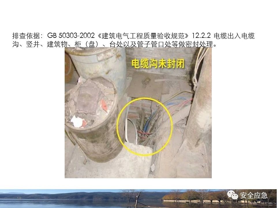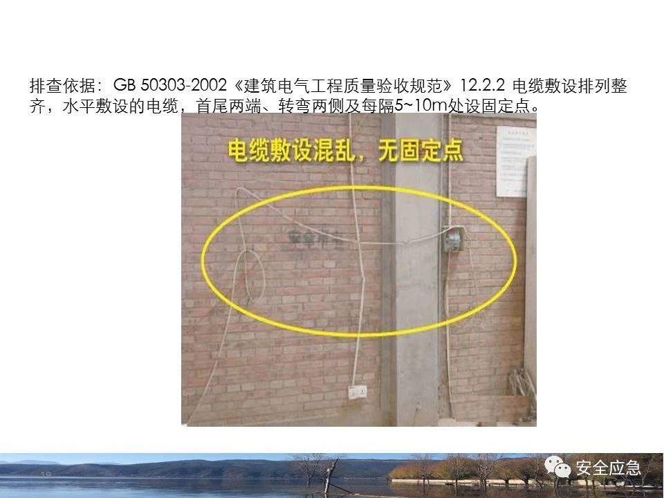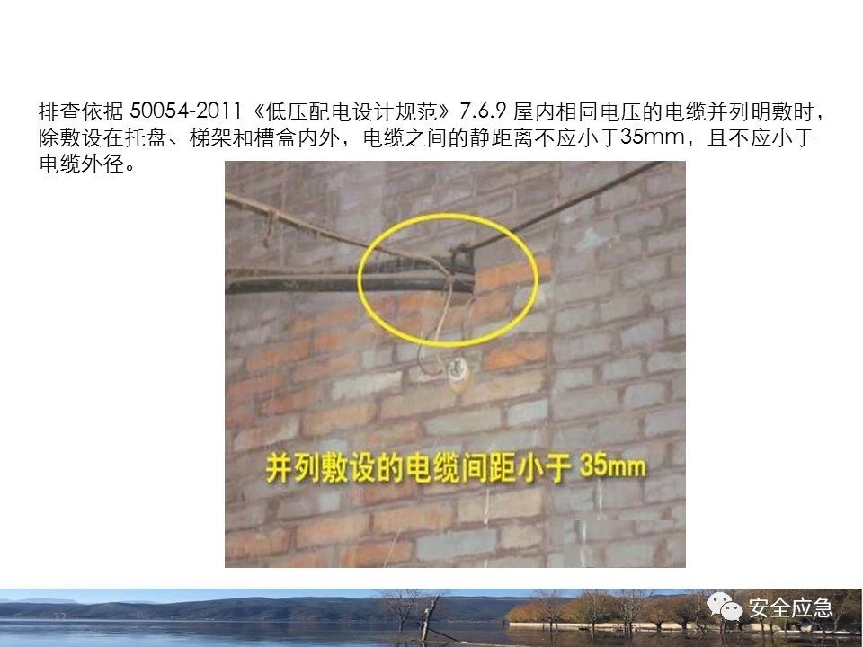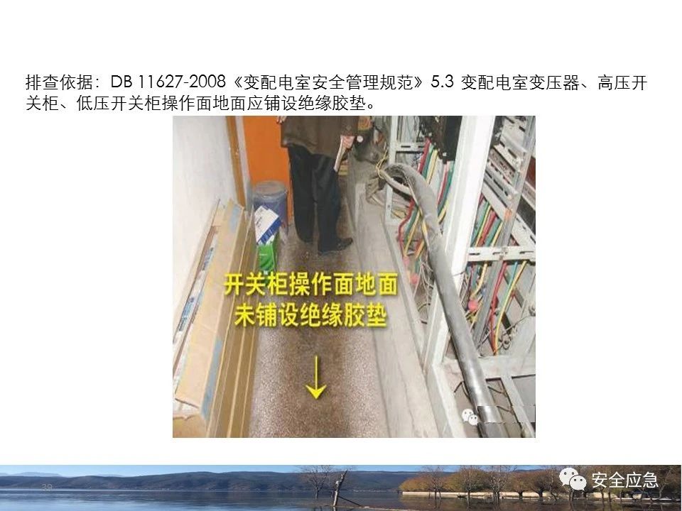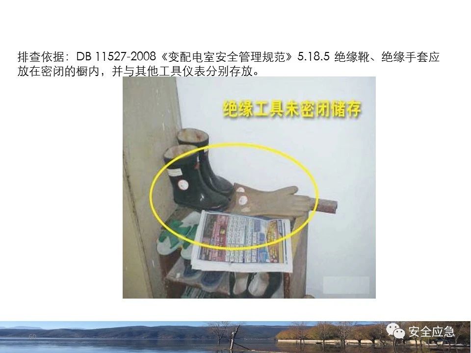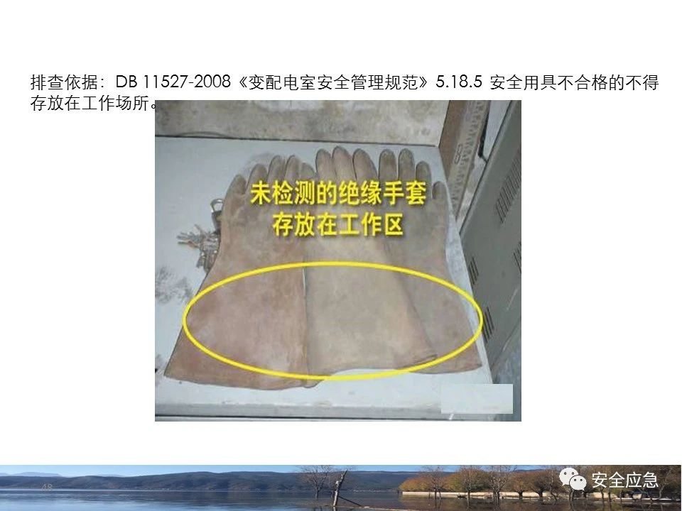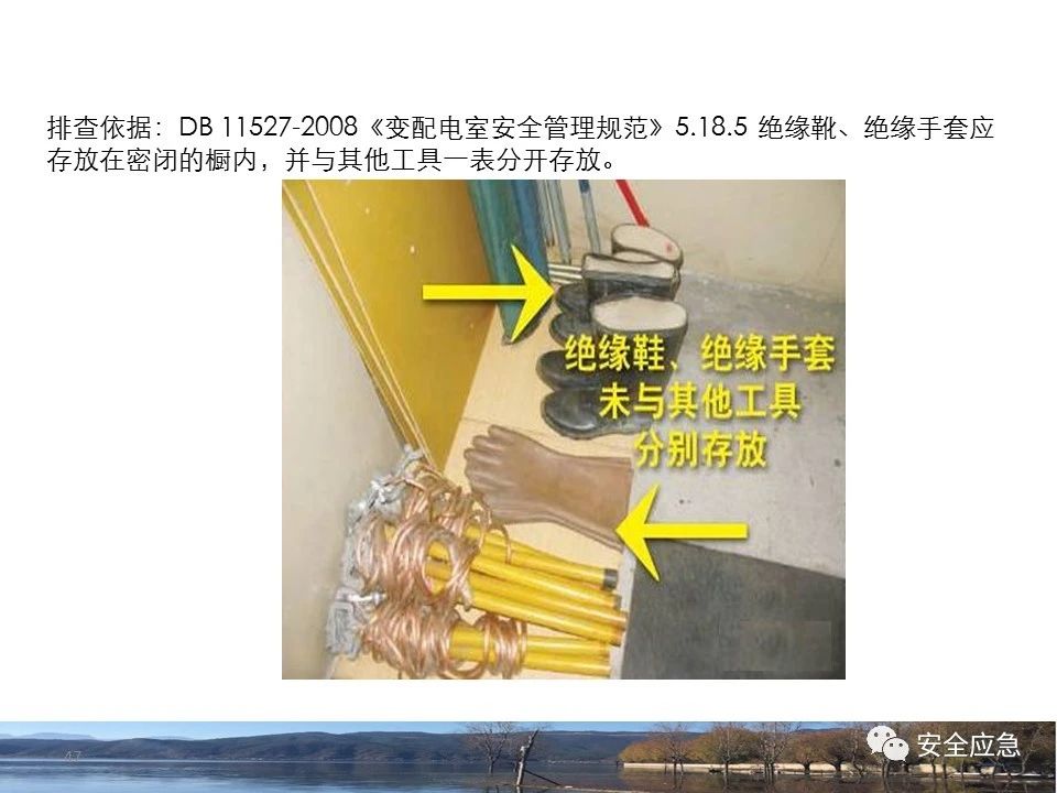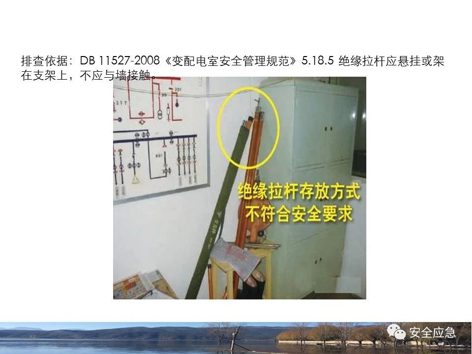 案例1 事故案例1:某輸電管理所對某35kV線路停電登檢,其中一段與10kV線路共桿塔架設(shè),35kV線路在上層,10kV線路在下層,工作前10kV、35kV線路均停電、驗(yàn)電懸掛接地線。工作過程中10kV線路送電,3名工作班成員1死2傷。 案例2 事故案例2:某供電所開展拆除10kV空線作業(yè)。該桿塔有2回10kV線路,一回在上方,運(yùn)行狀態(tài)。待拆除空線在下方。作業(yè)人員未進(jìn)行驗(yàn)電,登桿后掛接地線。在先掛好B相后,由于掛不到AC相,爬到電桿頂上,此時(shí)碰觸到運(yùn)行線路觸電死亡。 案例3 事故案例3:某供電所開展10kV線路拆除作業(yè)。桿塔西側(cè)待拆除線路在檢修狀態(tài),東側(cè)2回10kV線路分上下兩層在運(yùn)行狀態(tài)。工作任務(wù)結(jié)束后,工作負(fù)責(zé)人看見塔上電纜搭在第二臺鋼塔橫擔(dān)上,隨即上塔處理,準(zhǔn)備從塔的西面移至東面準(zhǔn)備抬電纜時(shí),后頸部碰觸到帶電線路觸電死亡。 (2)安全距離不夠的線路未停電 案例4 事故案例4:事故前,施工單位在正常運(yùn)行的10kV青龍線上方搭建竹跨越架。10kV青龍線99-100號桿段上方有帶電運(yùn)行的35kV田金線跨越,最短距離5.37米。由于10kV青龍線跨越架倒塌,導(dǎo)致斷桿、多檔導(dǎo)線脫落。隨后,工作人員開展缺處工作。在10kV青龍線導(dǎo)線收緊時(shí),導(dǎo)線被抬升后與上方運(yùn)行的35kV田金線安全距離不足放電,導(dǎo)致收線的8名施工人員觸電,4人死亡4人受傷。 案例5 事故案例5:某單位進(jìn)行400V干線收緊弧垂工作,工作地點(diǎn)上方交叉跨越的10kV線路距離400V主干配電線#1桿桿頂830mm,但未停電。工作人員準(zhǔn)備實(shí)施緊線作業(yè),當(dāng)左腿跨至橫擔(dān)上時(shí),上方交叉跨越的10kV線路對其右肩背放電。 案例6 事故案例6:某施工隊(duì)開展新建10kV線路穿越運(yùn)行的110kV線路作業(yè),兩回線距離僅有1.3m 左右,造成110kV線路對新架設(shè)10kV線路放電,死亡1人,重傷1人。 案例7 事故案例7:某施工隊(duì)進(jìn)行10kV新建立桿施工過程中,扒桿倒在鄰近運(yùn)行的10kV運(yùn)行線路上,導(dǎo)致人身觸電,2人死亡,1人受傷。 案例8 事故案例8:某施工隊(duì)負(fù)責(zé)人開展低壓線路架設(shè)工作。手拉導(dǎo)線由B2#桿展放上到配變后,兩名工作人員手持導(dǎo)線同時(shí)上到帶電的變壓器雙桿上,一名工作人員在上層工作時(shí)與10kV裸導(dǎo)線較近,將手持的400V絕緣導(dǎo)線誤碰到10kV變框小母線后,導(dǎo)至兩人同時(shí)觸電。 案例9 事故案例9:某施工隊(duì)開展10kV高壓跌落熔斷器安裝工作。本應(yīng)在原10kV阿租支線0號桿、1號桿,10kV一街Ⅱ回線26號桿、28號桿各裝一組接地線。但實(shí)際10kV一街Ⅱ回線27號桿大號側(cè)、原10kV阿租支線1號桿大號側(cè)各裝設(shè)了1組接地線。同時(shí),接地線的接地樁埋深為41 cm,因土壤長期干旱,造成接地電阻較大(實(shí)測值:333歐),遠(yuǎn)遠(yuǎn)超過接地要求值(30歐),接地線失去接地保護(hù)作用。由于10kV一街線坡頭支線(原帶電)與10kV一街Ⅱ回線(原不帶電)桿之間有交叉跨越(垂直距離約2米),檔距較大,刮大風(fēng)導(dǎo)致10kV一街線坡頭支線向上舞動(dòng),對10kV一街Ⅱ回線放電,致使2名作業(yè)人員觸電,1死1傷。 其它案例見37、38。 (3)錯(cuò)停線路 案例10 事故案例10:某工作人員與調(diào)度聯(lián)系停電線路時(shí),錯(cuò)誤說成其他線路,導(dǎo)致其他線路停電而工作線路未停電。隨后,工作人員在沒有采取驗(yàn)電、掛接地線等安全措施的情況下便登桿,造成觸電。 (4)開關(guān)柜相鄰柜之間沒有隔板,但未停相鄰間隔 案例11 事故案例11:某檢修班組開展10kV開關(guān)柜(GG1A柜)檢修作業(yè)。工作人員獨(dú)自爬上4321隔離開關(guān)柜頂從事4321隔離開關(guān)檢修相關(guān)工作。因其與相鄰間隔的帶電的10kVII段母線安全距離不夠,觸電死亡。 案例12 事故案例12:某工作人員在開關(guān)柜內(nèi)進(jìn)行二次接線,由于工作地點(diǎn)與相鄰柜之間沒有隔板,意外墜入相鄰帶電開關(guān)柜,導(dǎo)致觸電。 (5)不停電不正確使用安全工器具開展低壓作業(yè) 案例13 事故案例13:某廠家對220kV變壓器的繞組溫度計(jì)進(jìn)行更換消缺工作。在沒有對繞組溫度計(jì)工作電源(220V)停電的情況下作業(yè)。將帶有220V電壓的電纜芯線上的絕緣帶拆除時(shí),誤碰帶電芯線造成觸電死亡。 案例14 事故案例14:某供電所員工檢查一客戶家中斷電情況。巡線時(shí)發(fā)現(xiàn)220V低壓線路導(dǎo)線斷線,在未斷開低壓開關(guān)、未戴絕緣手套的情況下,試圖將導(dǎo)線卷起時(shí),不慎觸碰帶電導(dǎo)線中間裸露部分,導(dǎo)致觸電死亡。 案例15 事故案例15:某工作人員在檢查時(shí)發(fā)現(xiàn)220V低壓線路故障點(diǎn),在未戴手套、未使用絕緣梯子的情況下,在拆除三通PVC管時(shí),左手不慎觸碰帶電絕緣導(dǎo)線破損點(diǎn)裸露部分,導(dǎo)致觸電受傷。 2.驗(yàn)電環(huán)節(jié) (6)不檢查設(shè)備狀態(tài)、不驗(yàn)電 案例16 事故案例16:供電所某員工在未攜帶驗(yàn)電器、接地線、絕緣手套、絕緣靴、安全帽等必備安全工器具的情況下處理10kV用戶缺相故障。一名工作人員拉開AB相跌落保險(xiǎn)后,由于尿急想去小便,就把絕緣操作桿遞給正在低頭系安全帶的另一名工作人員,并說還有一相。另一名工作人員接過操