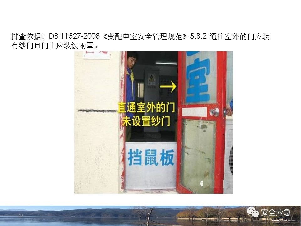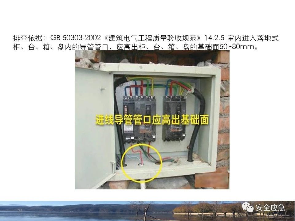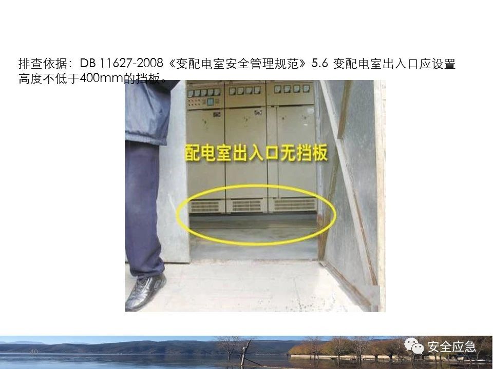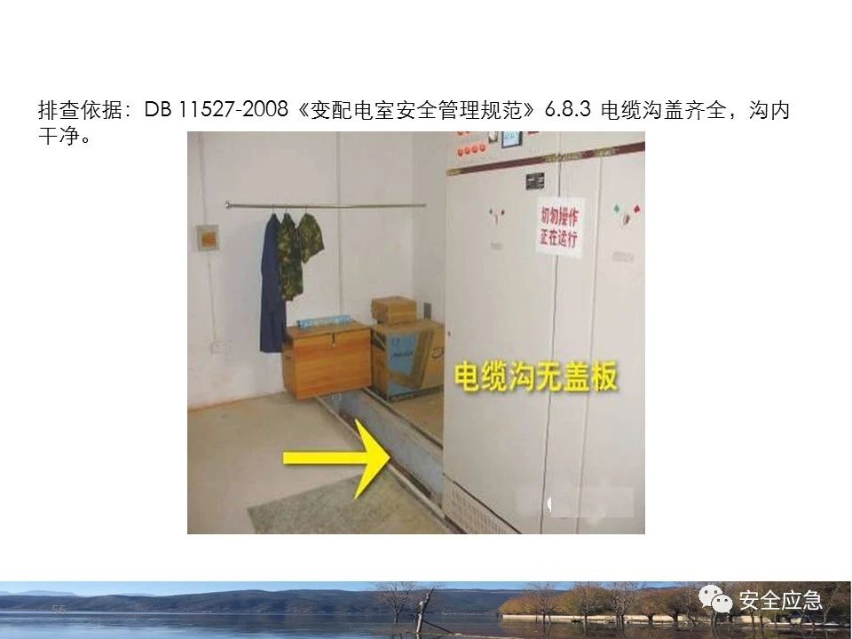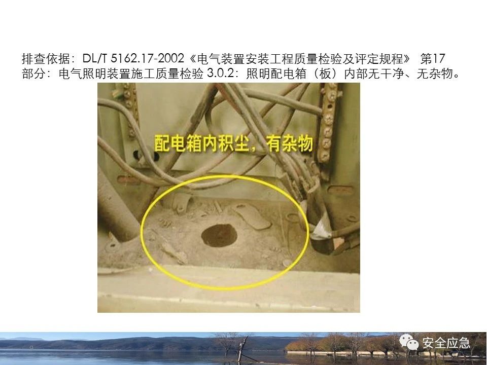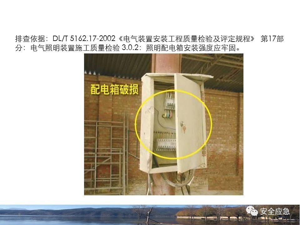 8.1.6規(guī)定配電箱、開關(guān)箱周圍應(yīng)有足夠2人同時(shí)工作的空間和通道,不得堆放任何妨礙操作、維修的物品,不得有灌木、雜草。
