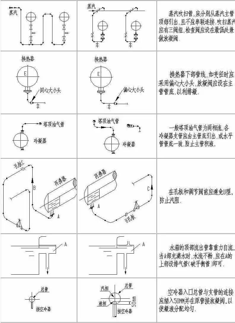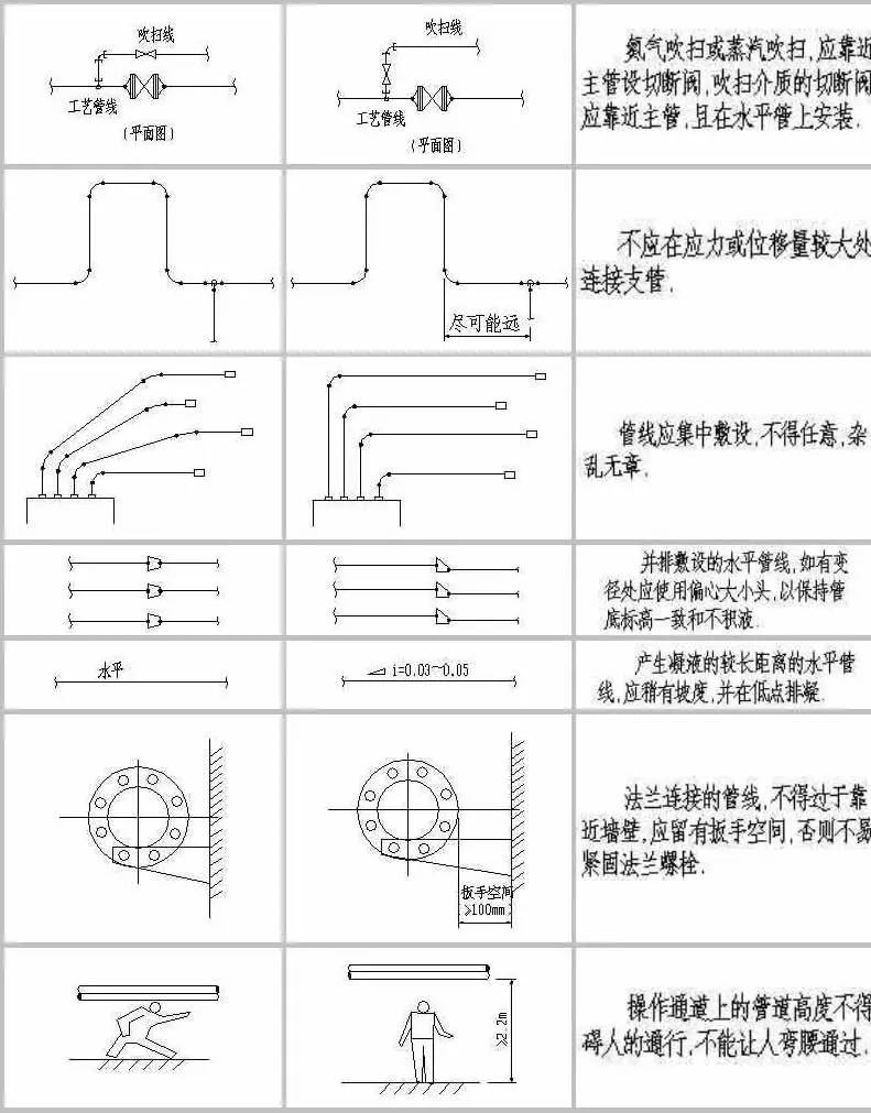 計中經(jīng)常由于設計人員的疏忽及經(jīng)驗不足,會造成管道布置不合理,操作檢修不便,外表不美觀的情況。為提高設計質量,減少常識性錯誤的發(fā)生,本文為大家整理了配管設計中這些最常見的實例!