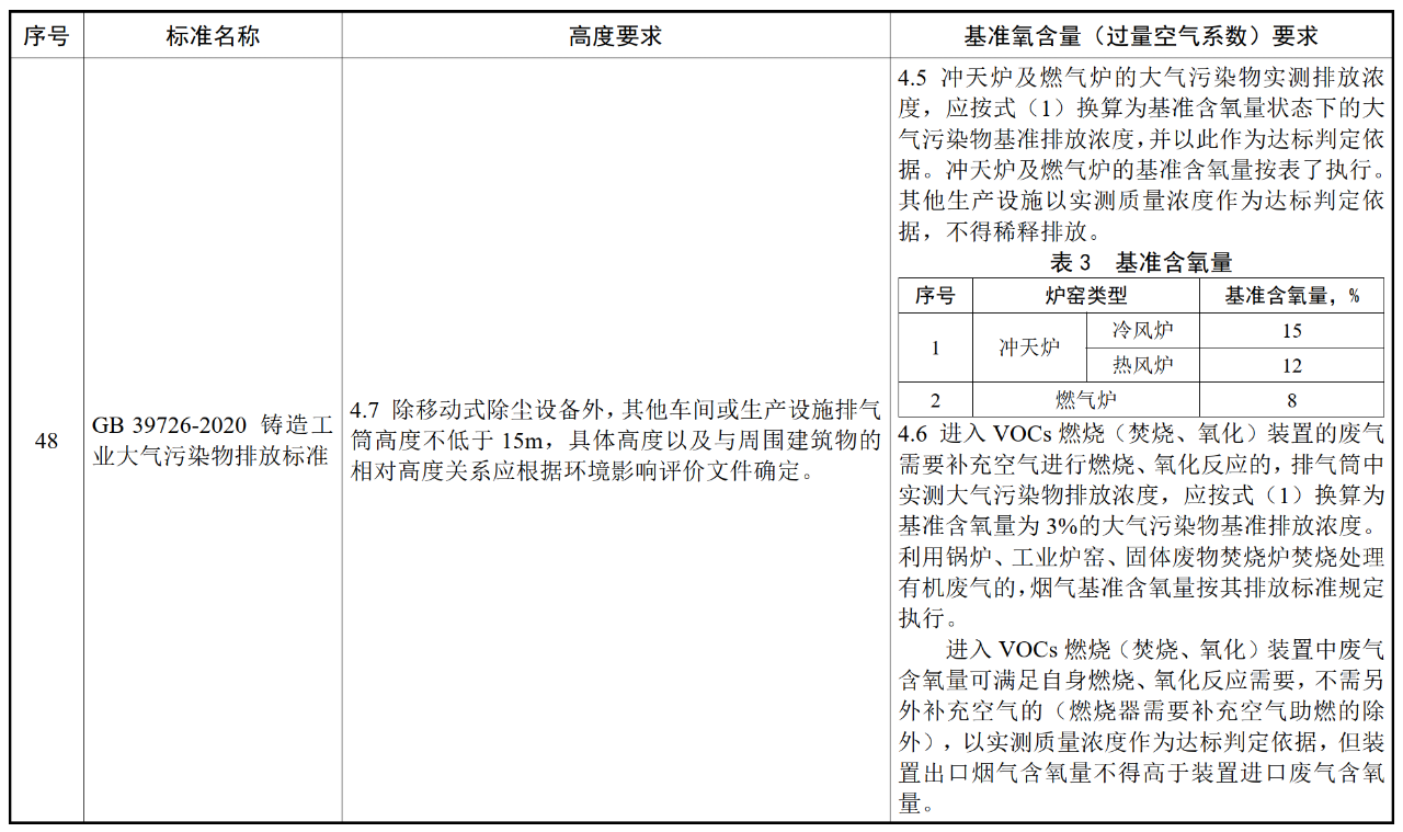 各行業(yè)大氣污染物(含VOCs)排氣筒高度及基準氧含量要求