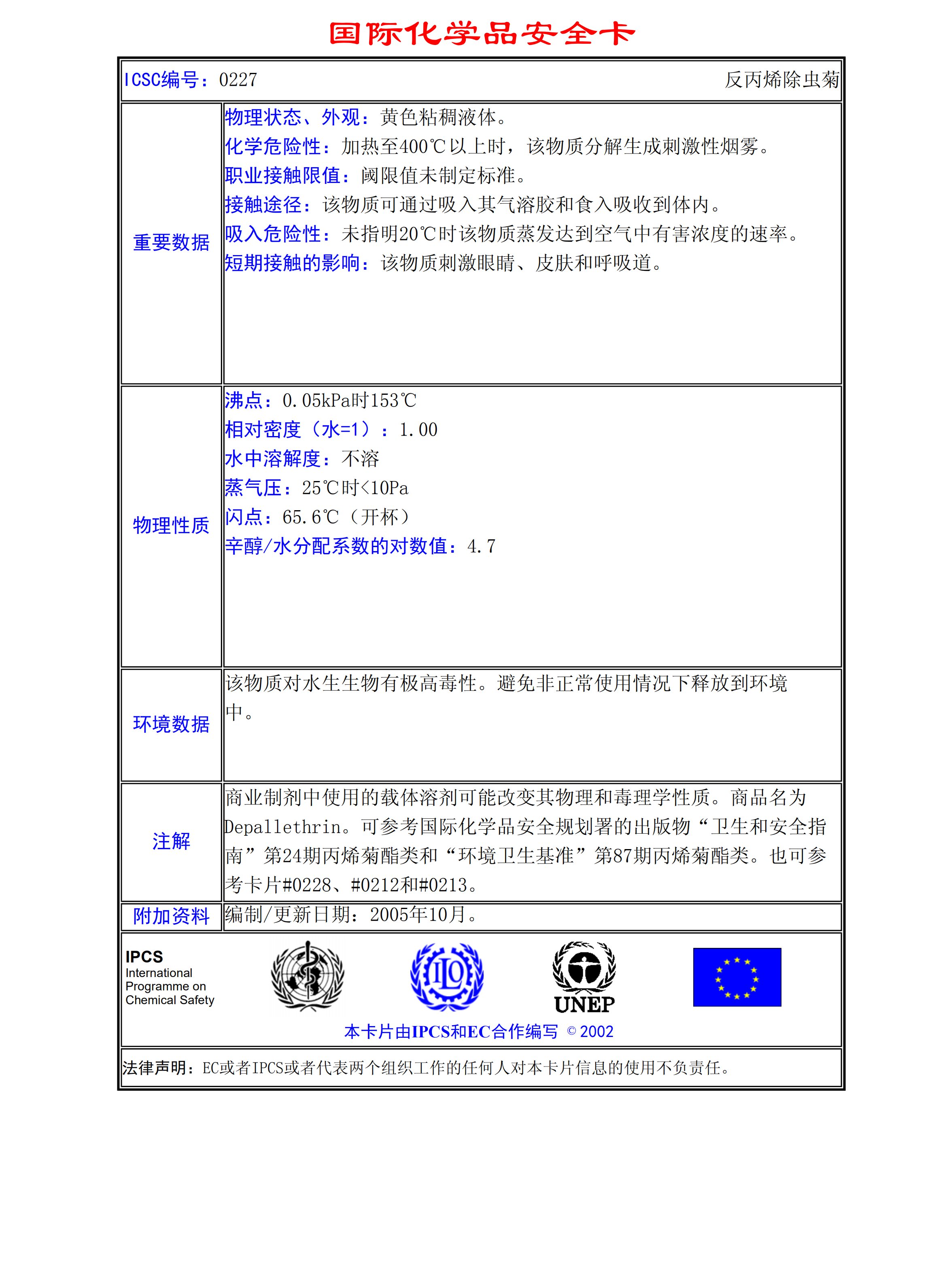 反丙烯除蟲(chóng)菊MSDS