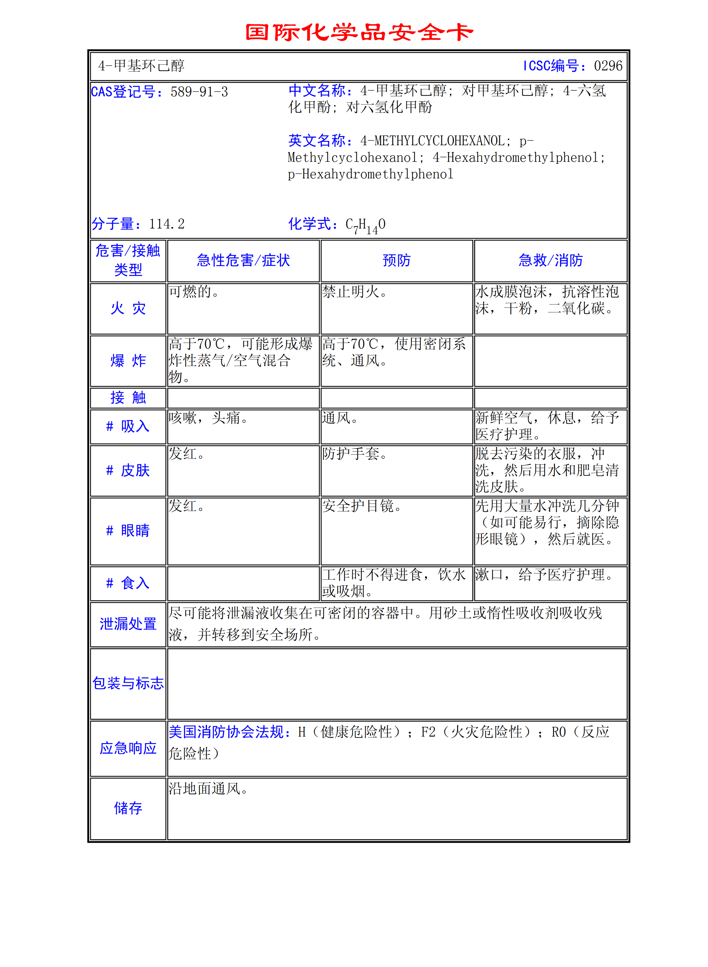 4-甲基環(huán)己醇MSDS
