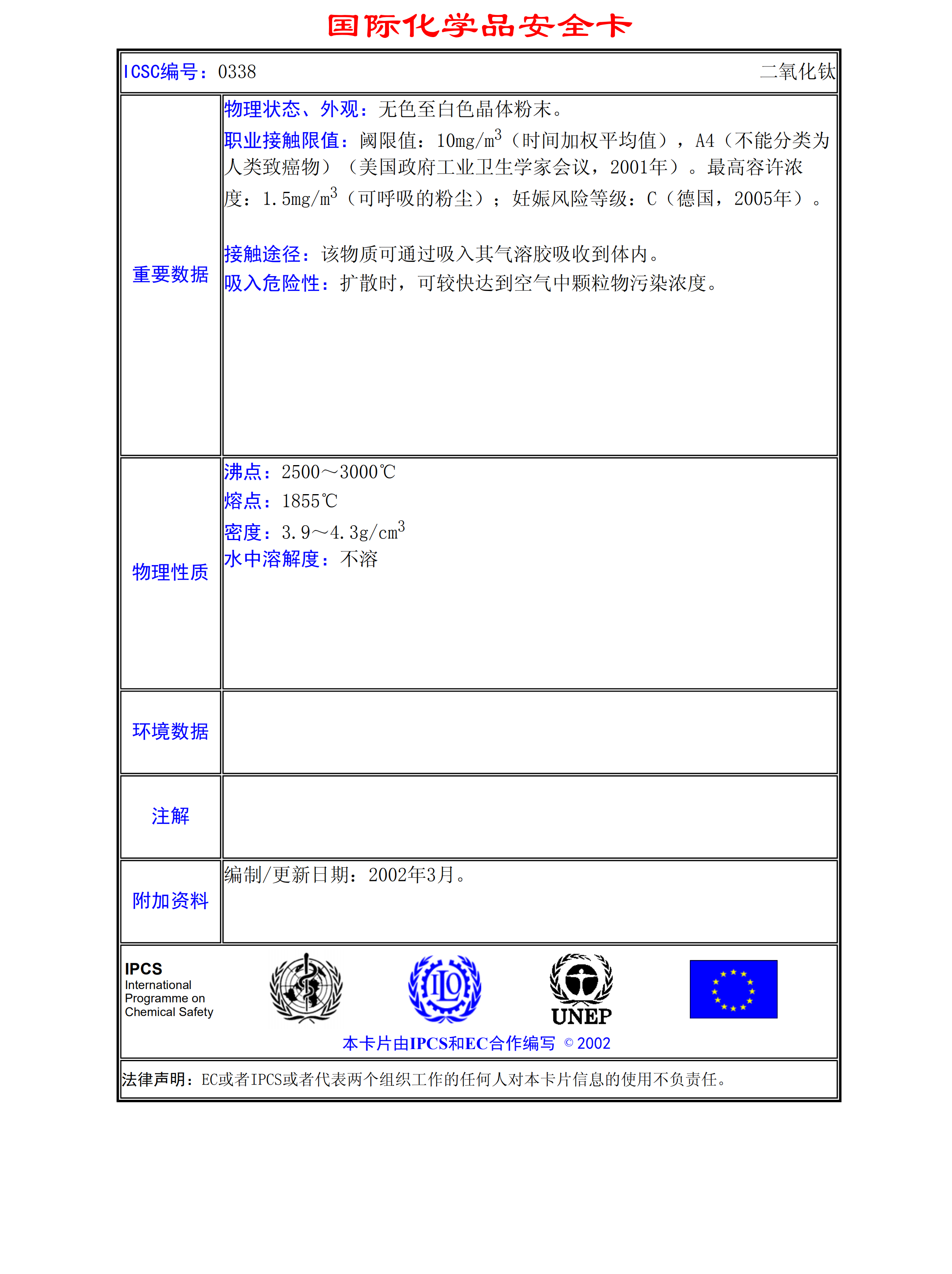 二氧化鈦MSDS