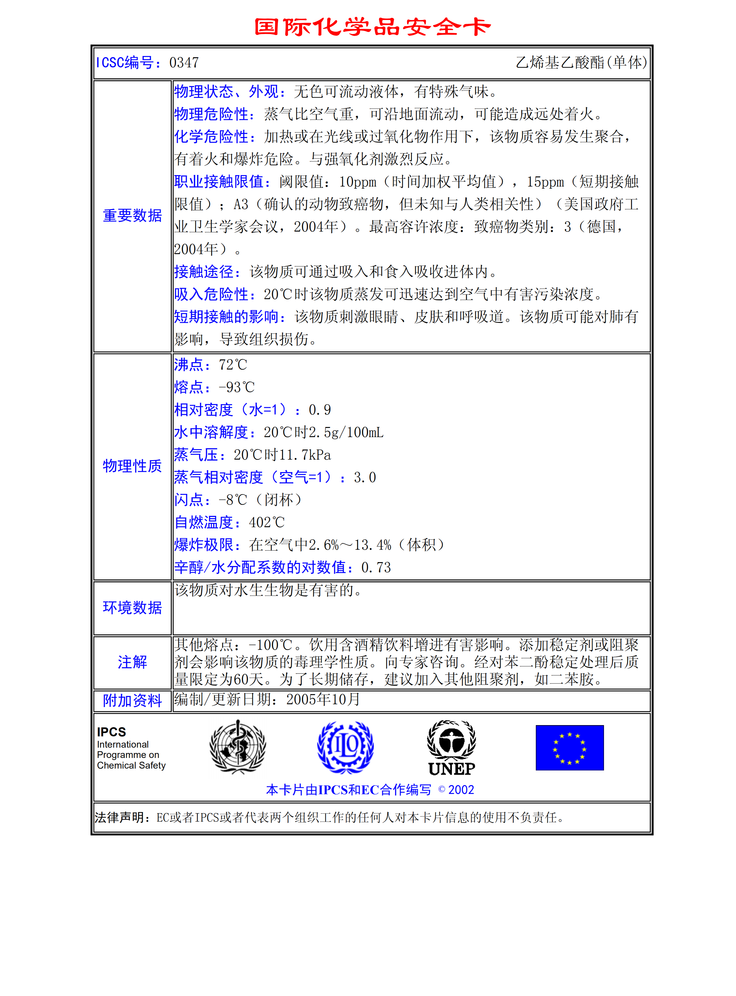 乙烯基乙酸酯(單體)MSDS