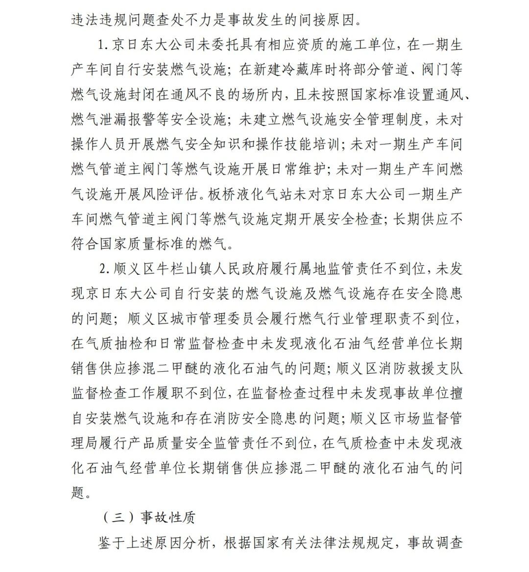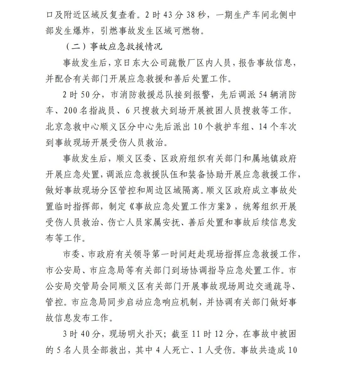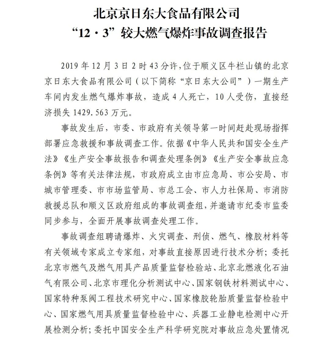 2019年12月3日2時43分許,北京順義區(qū)牛欄山鎮(zhèn)的(以下簡稱“京日東大公司”)一期生產(chǎn)車間內(nèi)發(fā)生燃氣爆炸事故,造成4人死亡,10人受傷,直接經(jīng)濟損失1429.563萬元。
