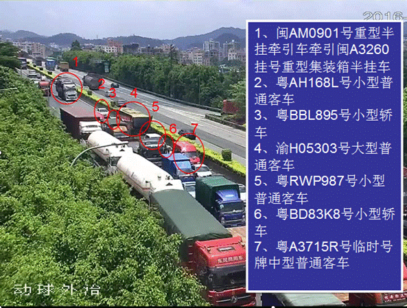 此次事故造成粵BBL895號(hào)小型轎車駕駛員江文洪及其車上乘客劉偉杰、江文靜、黃意娣四人當(dāng)場(chǎng)死亡,七車不同程度損壞,事故直接經(jīng)濟(jì)損失約413.5萬(wàn)元。
