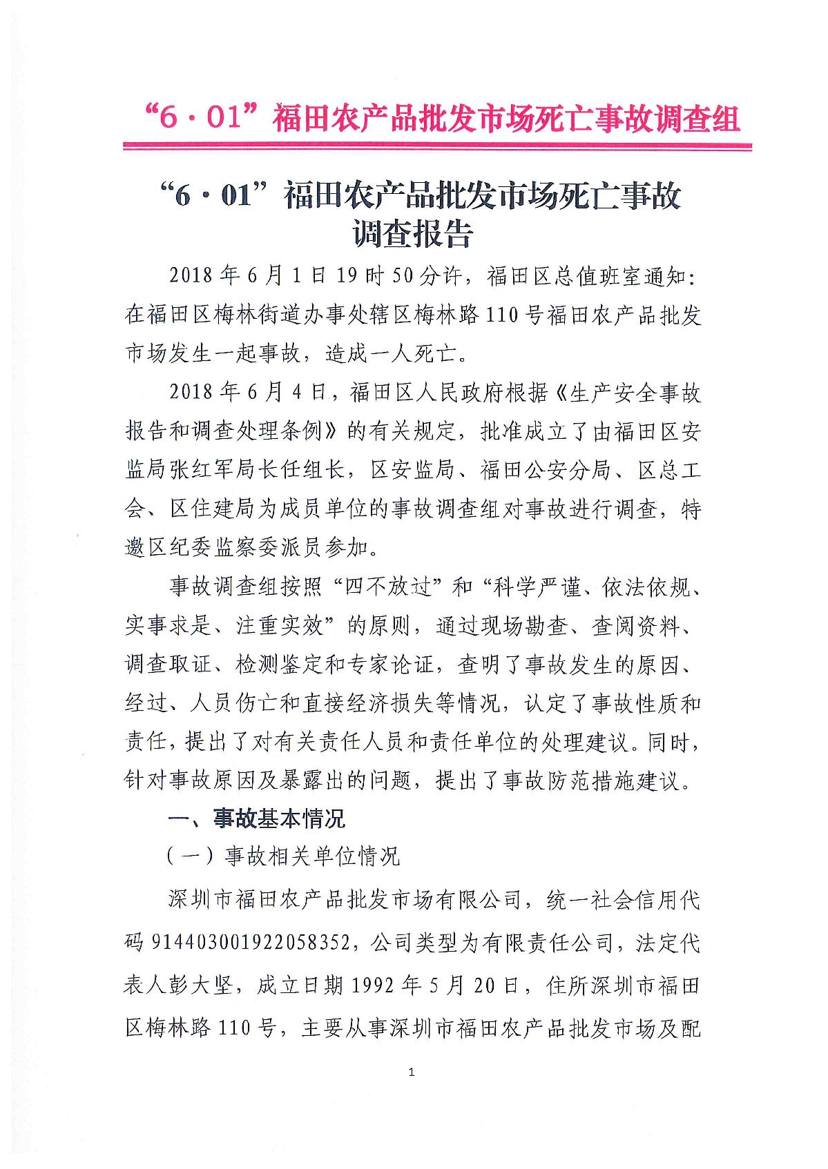 “6.01”福田農(nóng)產(chǎn)品批發(fā)市場死亡事故調(diào)查