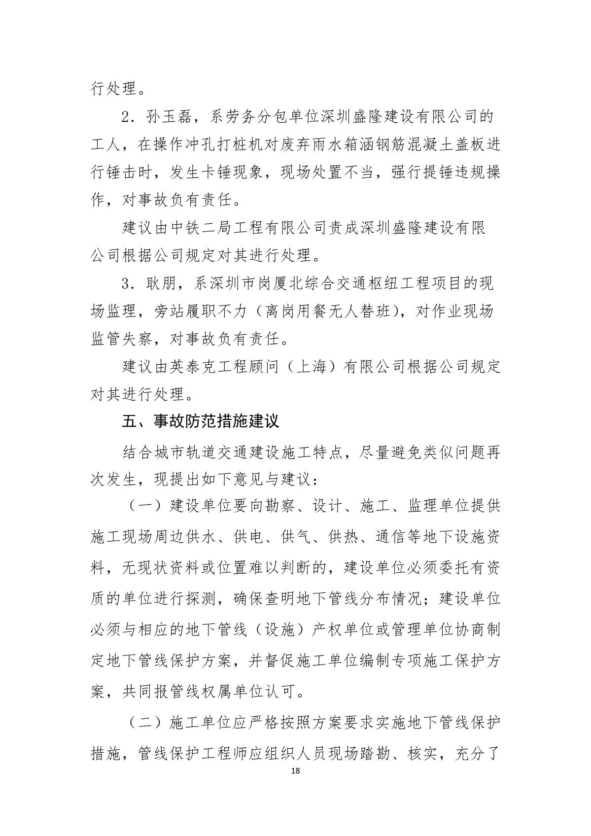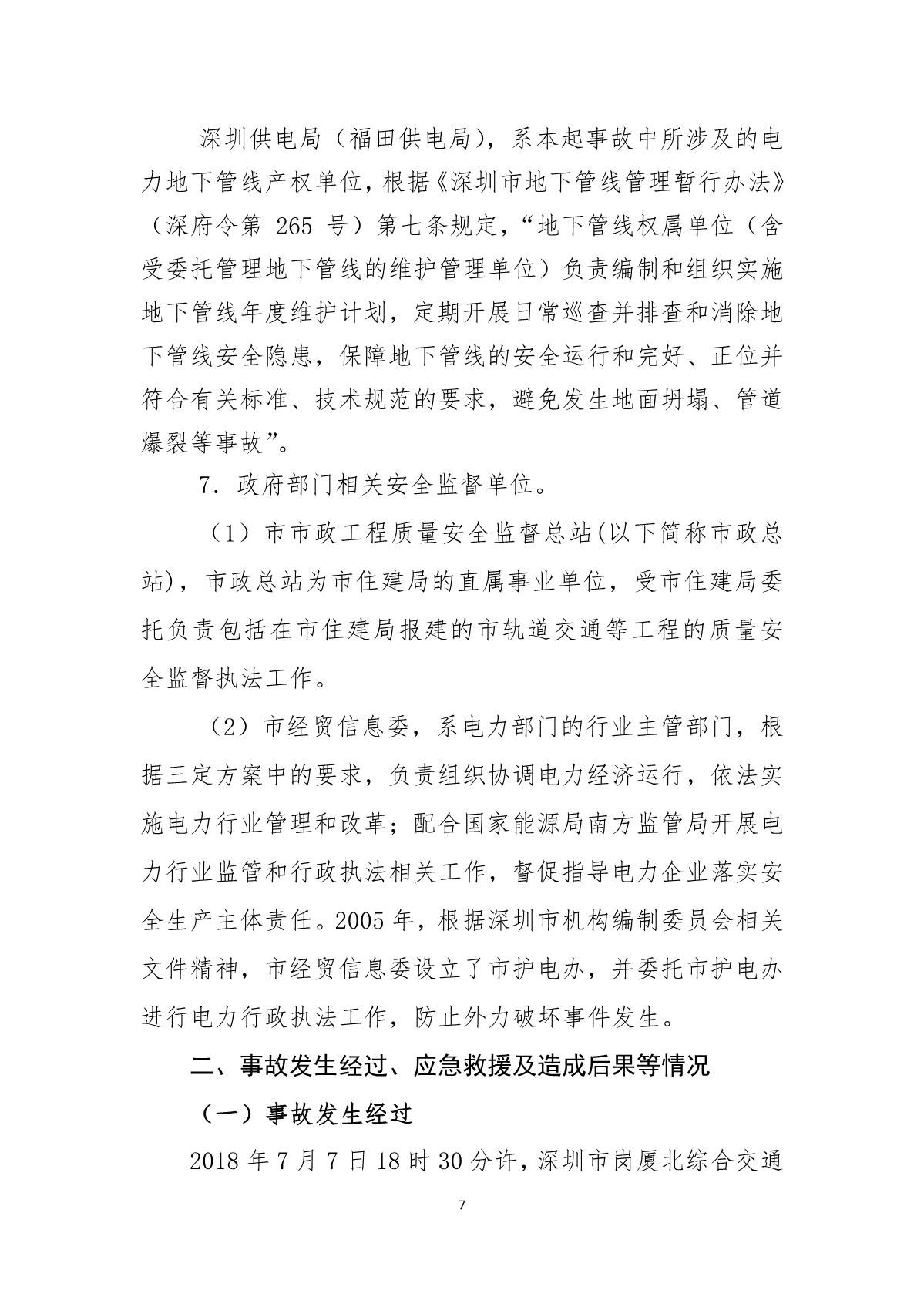福田區(qū)人民政府關于深圳市城市軌道交通6號線二期主體工程6111標“7.05”10kv電力電纜受損事故調(diào)查報告