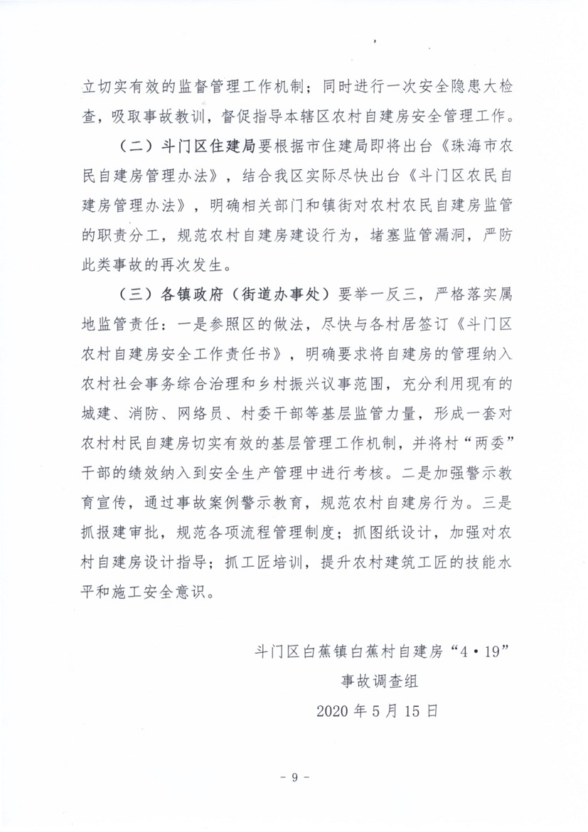 斗門區(qū)白蕉鎮(zhèn)白蕉村自建房“4·19”事故調(diào)查報告