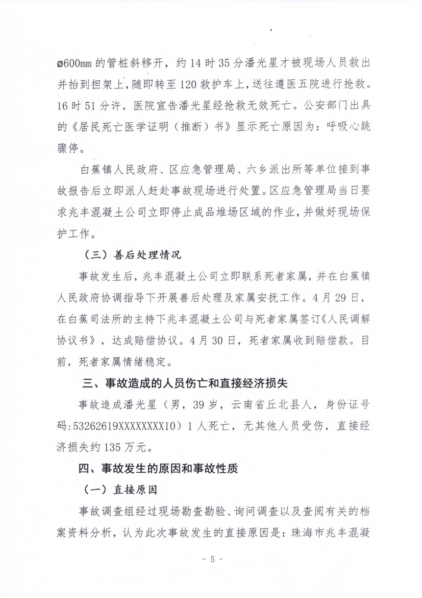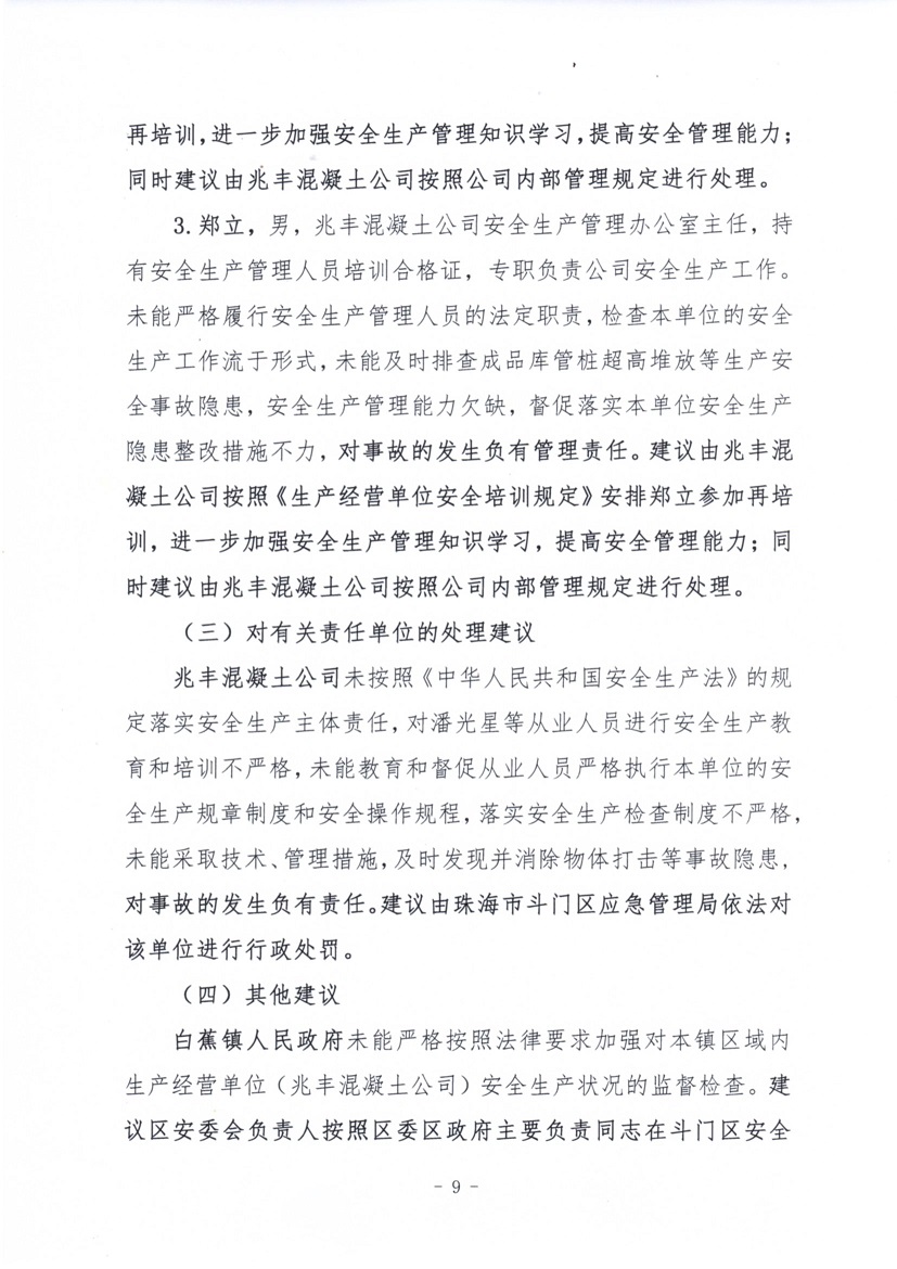 珠海市兆豐混凝土有限公司“4·19”一般物體打擊事故調(diào)查報(bào)告