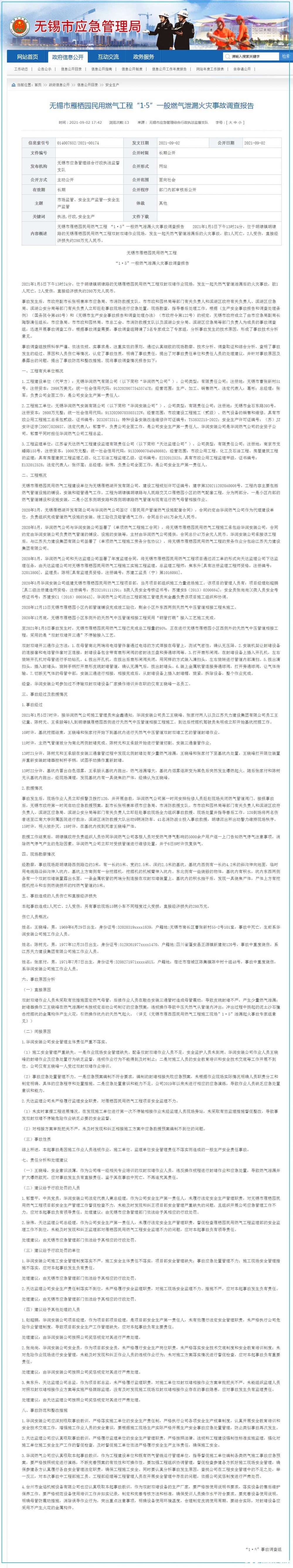 江蘇省無錫公布一起“挖爆燃氣管道”事故調(diào)查結(jié)果