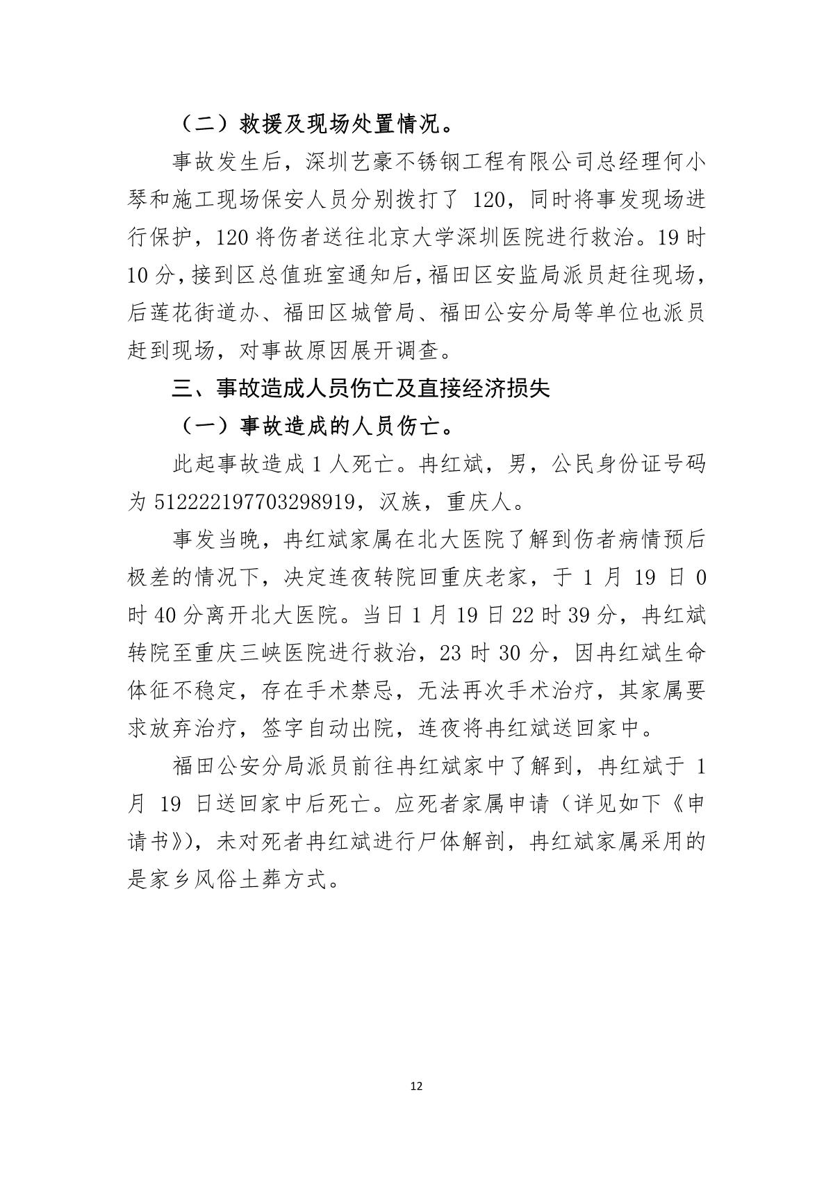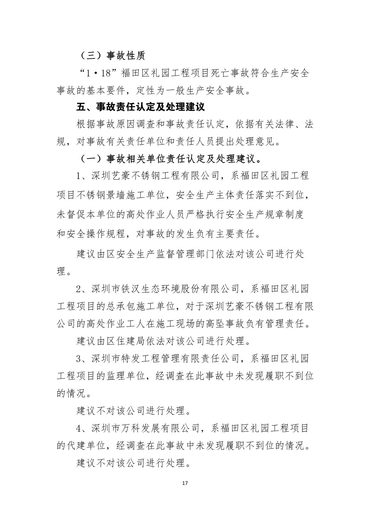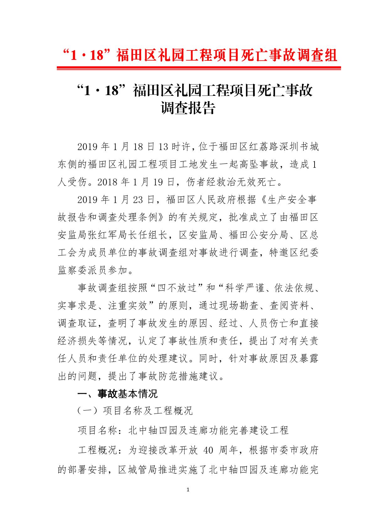 “1.18”福田區(qū)禮園工程項目死亡事故調(diào)查報告