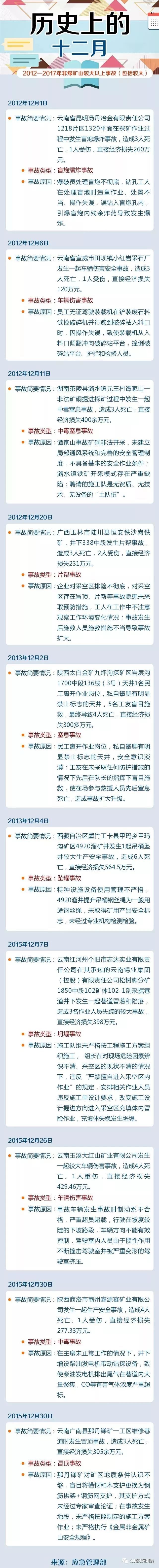 據(jù)不完全統(tǒng)計(jì),2012年-2017年12月非煤礦山發(fā)生較大以上事故(包括較大)10起,中毒和窒息類(lèi)事故多發(fā)!